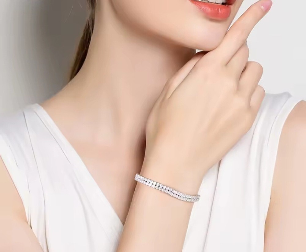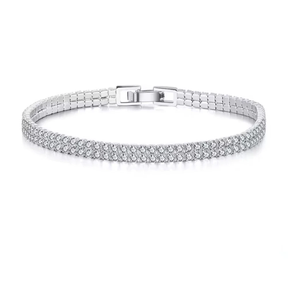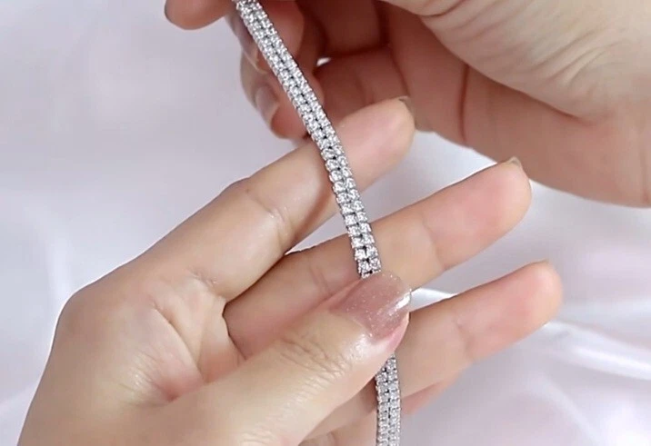 2 Rows Silver Plated Rhinestone Diamond Round Tennis Bridal Bracelet for Women Approximate Measurements: Bracelet 17 cm Metal Colour: Silver Colour appearance may be different on Pc display, Backgrounds, surroundings & lights. The actual product colour may be slightly different from the images . Please check all pictures for full description . If any question, please don't hesitate to ask. Buy with confidence. For any issue, please contact us first I’m sure any problem can be easily taken care of.