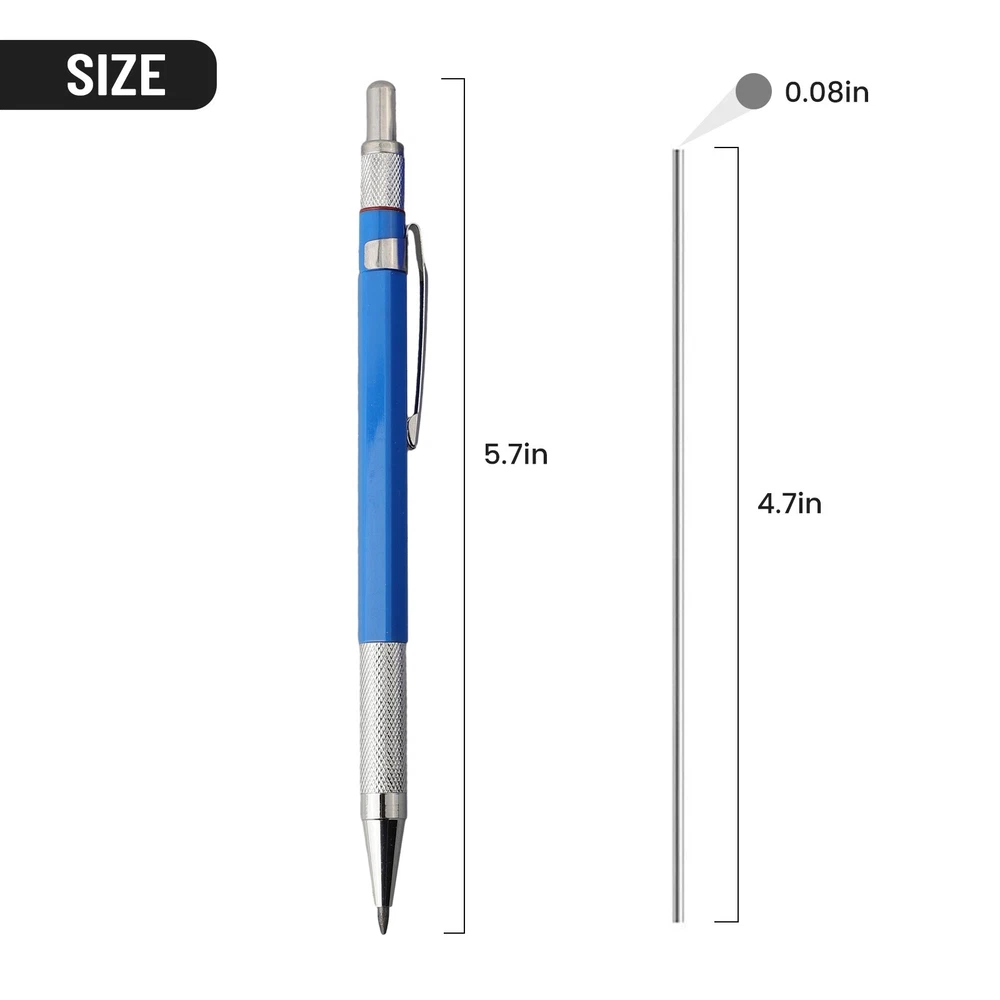 Product Description Features: brand new high quality Made of high quality material, You will get 1 metal crafting pen and 12 silver round refills, enough quantity for your daily use The mechanical pencil has a built-in ener for easy storage, and the silver refill is strong and not easy to break, and can be used for a long time Mechanical Pencil, Oily Marker, Increased Durability and Moisture Resistance, Can Mark Various Materials, Such as Oily, Smooth, Rough, Wet, Dry, Rusty Metal, Cold , etc. Easy to use, you can press the cap to fill, easy to use, comfortable design and easy to control, will not scratch the metal , strong and not easy to break, portable to carry Product parameters: color: blue material: metal Dimensions: as picture shown WIDE APPLICATIONS: for metal layout, fabrication, pipe fitters, welders, steel construction, carpenters, carpenters, builders, tradesmen and more Package Included: 1 * mechanical pencil 12 * refills Note: 1.The real color of the item may be slightly different from the pictures shown on website caused by many factors such as brightness of your monitor and light brightness. 2.Please allow slight manual measurement deviation for the data. Payment Payment must be completed within 5 days. If you have any problems about payment, please contact us via message. Delivery details We only ship to confirmed Order addresses. Please comfirm that your Order address is in line with your shipping address. Please kindly note that the c ombined shipping is not provided because the shipping fee is calculated by weight. Also, the each additional item means exactly the the same color and size. It takes about 7 -15 working days to US; about 10-30 working days to other countries. for TRANSIT time may be a little delayed because of the bad weather and customs inspection . If you do not receive your item within 30 working days since payment finished, please contact us immediately for further assistance. Contact us We strive for 100% customer satisfaction! Positive is very important to us. If you have any questions, p lease feel free to contact us via "Ask seller a question" . We will reply your email within 24 working hours. On Nov 8, 2024 at 05:44:03 PST, seller added the following information: