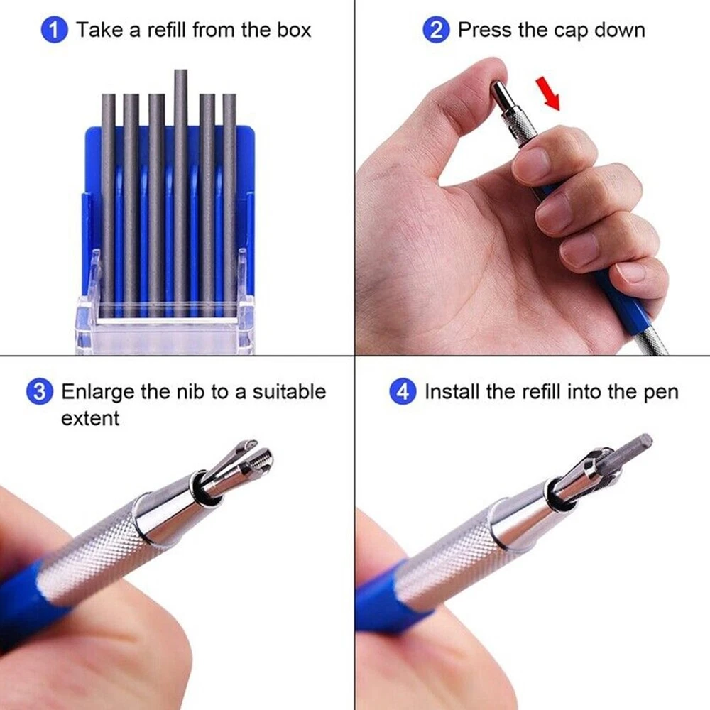 Product Description Features: brand new high quality Made of high quality material, You will get 1 metal crafting pen and 12 silver round refills, enough quantity for your daily use The mechanical pencil has a built-in ener for easy storage, and the silver refill is strong and not easy to break, and can be used for a long time Mechanical Pencil, Oily Marker, Increased Durability and Moisture Resistance, Can Mark Various Materials, Such as Oily, Smooth, Rough, Wet, Dry, Rusty Metal, Cold , etc. Easy to use, you can press the cap to fill, easy to use, comfortable design and easy to control, will not scratch the metal , strong and not easy to break, portable to carry Product parameters: color: blue material: metal Dimensions: as picture shown WIDE APPLICATIONS: for metal layout, fabrication, pipe fitters, welders, steel construction, carpenters, carpenters, builders, tradesmen and more Package Included: 1 * mechanical pencil 12 * refills Note: 1.The real color of the item may be slightly different from the pictures shown on website caused by many factors such as brightness of your monitor and light brightness. 2.Please allow slight manual measurement deviation for the data. Payment Payment must be completed within 5 days. If you have any problems about payment, please contact us via ebay message. Delivery details We only ship to confirmed ebay Order addresses. Please comfirm that your Order address is in line with your shipping address. Please kindly note that the c ombined shipping is not provided because the shipping fee is calculated by weight. Also, the each additional item means exactly the the same color and size. It takes about 7 -15 working days to US; about 10-30 working days to other countries. Transit time may be a little delayed because of the bad weather and customs inspection . If you do not receive your item within 30 working days since payment finished, please contact us immediately for further assistance. Contact us We strive for 100% customer satisfaction! Positive Feedback is very important to us. If you have any questions, p lease feel free to contact us via "Ask seller a question" . We will reply your email within 24 working hours.