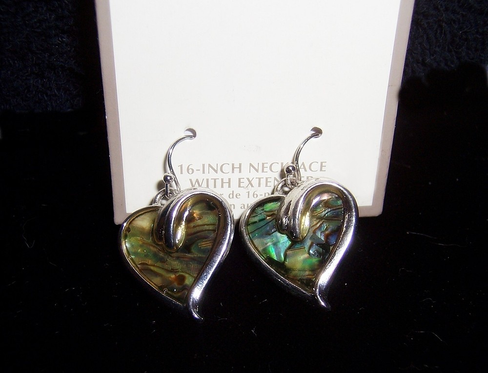 Wisdom Creek Trading Company Howdy everybody Welcome to Wisdom Creek! Today I want to tell you about our Brand New Silver Tone Choker with heart shaped pendant and matching earrings set. They both have abalone shell inserted in the center of the hearts. The choker has a lobster claw closer attached with a chain. The Matching earrings are pierced dangle wire with rubber slide on tbacking to hold the earrings in place. The choker is 16 inches and the earrings are about inches long that includes the wire. The pendant is 2 inches in height and 1 1/2 inches in width. What a fun set to have just for that special occasions, like a first date, anniversary just a couple of of occasions and there are many many more. It's a Great Day on Wisdom Creek So saddle up and lets get started! This concludes another fine value offered here on Wisdom Creek. You may unhitch the team and exit this listing by clicking on the Buy it Now button at the top of this page. Please Check our eBay store for more items similar to this one in different styles, sizes or colors! Thanks for looking and for spending some of your valuable time with us! - The Gang at Wisdom Creek. We Welcome Questions, inquiries or comments so Please feel free to contact us! We actually respond to Inquiries! We Offer FREE SHIPPING on almost all our items, A sure way to save even more! We ship "Blazing Fast" usually within 24 Hours of receipt of payment! Click here to find more great stuff at The Trading Post on Wisdom Creek. We are always open 24 hours. See you again tomorrow! Let us know if you want in on limited quantity "Blazing Hot Deals" No junk, No Spam. Be sure to add me to your favorites list!