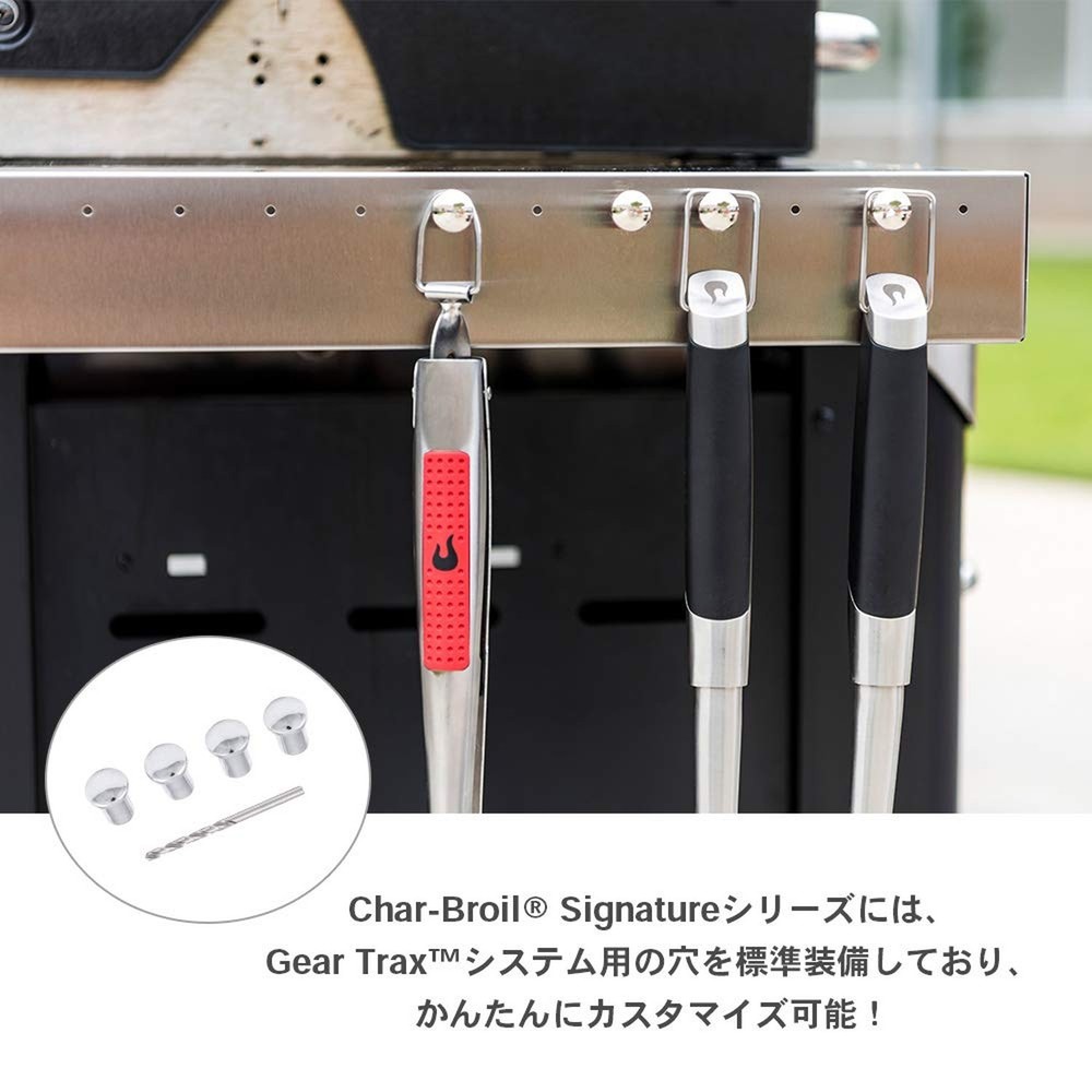 Silver Tool Knobs Gear Trax 1.1x0.7x0.7 Inch Replacement for Equipment Tools Product Details Power Source: Solid Fuel Color: Silver Outer Material: Metal Fuel Type: Charcoal UPC: 047362674081 Item Weight: 3.87 ounces Item model number: 5667408R06 Tool holder hooks to keep your tools handy Great for gas grills, charcoal grills and smokers Heavy duty metal construction Contains 4 easy to install hooks Includes drill bit for simple installation on grills without gear Trax Universal tool holder hooks to keep your tools close & handy while grilling. Great for gas grills, charcoal grills & smokers. Heavy-duty metal construction. Easy to install on grills with Char-Broil gear Trax system. Includes drill bit for simple installation on grills without gear Trax. Contains 4 easy to install tool hooks/knobs.