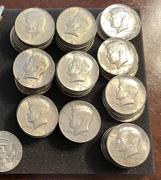 5 US Silver coins - 1 Silver Half Dollar. 1 Silver Dime. 3 Silver War Nickels.. THIS IS A GREAT WAY TO MAKE SMALL INVESTMENTS IN SILVER... IT'S IN SHORT SUPPLY & DEMAND HAS BEEN RISING. The mix is as listed. 5 total Silver circulated coins. ********THE COINS******* 1 Silver Kennedy Half Dollar. Dates 1965-1969 *40% 1 Silver dime (either a Roosevelt or Mercury) Dates 1920S-1964 *90% 3 Silver WarTime Nickels. Dates 1942-1945 *35% * SILVER CONTENT **This listing doesn't include the burlap bag** This is a great starter silver coin set. Get these silver coins before you can’t find them anymore. As silver goes up so does the cost of these coins. Silver coins are a great investment.