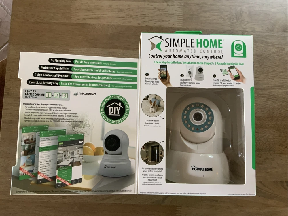 Brand new. Never opened. This Simple Home WiFi Pan & Tilt Security Camera is perfect for keeping your home secure and monitoring any activity. With automated control, you can easily maneuver the camera to get a clear view of any room. The camera is wireless and can be connected to your home network for easy access from anywhere. It comes in a sleek white color and is a great addition to any home. This camera is ideal for those looking to keep an eye on their home while away or to simply monitor activity in a specific room. It is easy to set up and use, with automated control making it simple to maneuver. With wireless connectivity, you can access the camera from anywhere and ensure that your home is always secure.