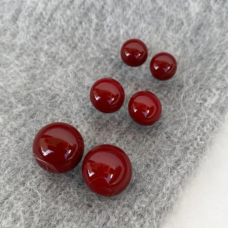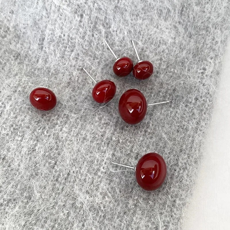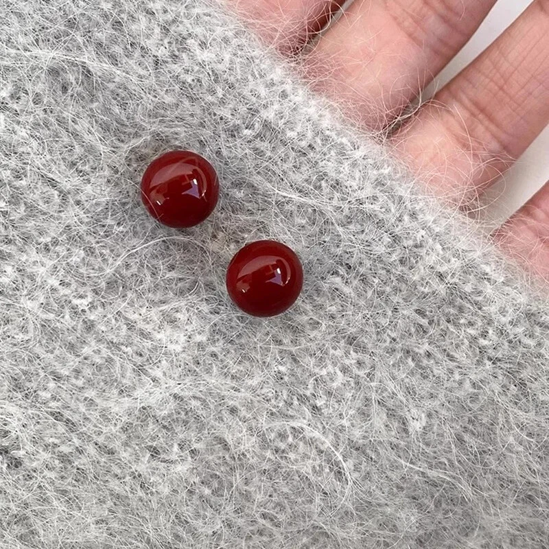 Simple Wine Red Steamed Bun Pearl Earpiece Temperament Retro Suitable For Women