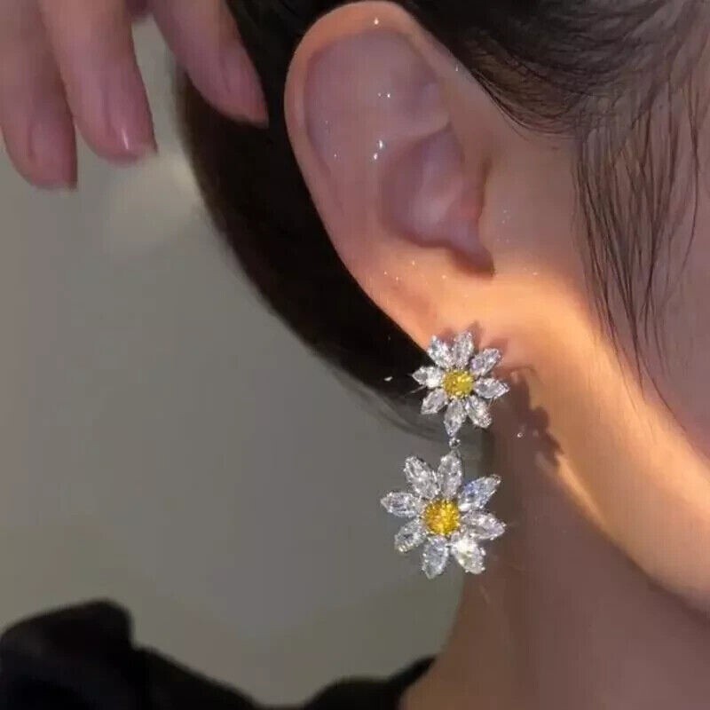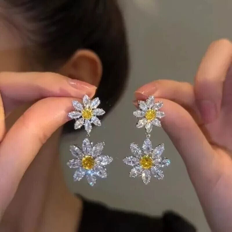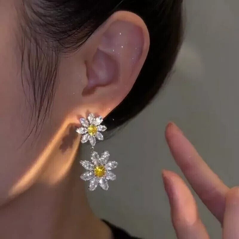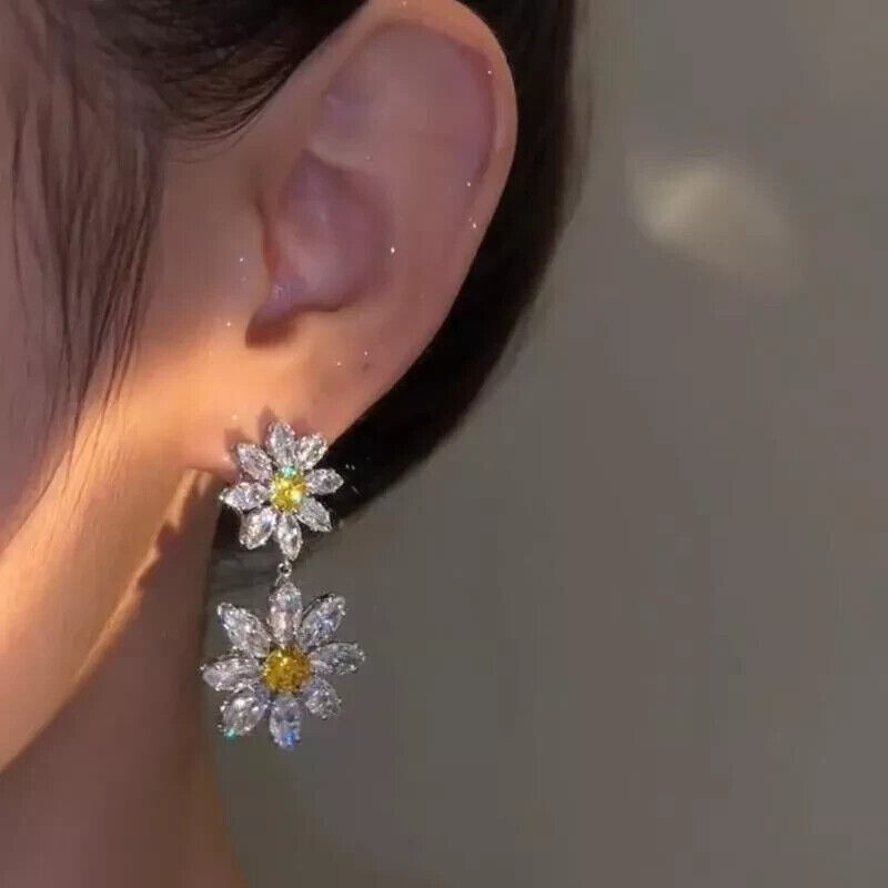 Handmade: Yes Vintage: No Metal: Sterling Silver Era: Undated Ear Area: Lobe Wholesale: Yes Closure: Push Back Metal Purity: 925 Signed: No Customized: Yes Setting Style: Prong Style: Dangle/Drop Theme: Beauty Antique: No Cut Grade: Excellent Main Stone Shape: Round Brand: sp_jewels Main Stone Creation: Simulated Shape: Flower gtin13: Does Not Apply Seller Warranty: Yes Country/Region of Manufacture: India Material: Stone, Metal, Gemstone Occasion: Anniversary, Birthday, Christening, Christmas, Confirmation/Communion, Engagement, Graduation, Mother's Day, Valentine's Day, Wedding MPN: NA Number of Gemstones: 2 Main Stone: Simulated Citrine Country of Origin: United States Seller Notes: ““Freshly made on order with quality and buyer satisfaction. No old stocks.”” Features: Engraved Base Metal: White Gold Plated Main Stone Color: Yellow Secondary Stone: Simulated Diamond Main Stone Treatment: Not Enhanced UPC: Does Not Apply Type: Earrings Color: White Personalize: No