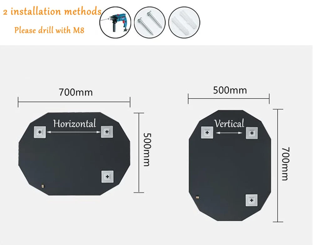 Aside from making spaces appear larger, wall mirrors offer a tactful, stylish way to hide imperfections, maximize light, and provide a second look at your favorite accents. This mirror can be mounted both vertically or horizontal, perfect for over the bathroom vanity. It's perfect for your modern bathroom needs. Copper-free silver mirror, environmentally friendly, much less corrosion rate compared with normal silver mirrors used by most brands, hanging both horizontally and vertically Modern design: this simple yet elegant diamond edge is a favorite, a sleek, modern, clean, beveled edge, floating, frameless design with our solid wood backing for reinforcement and stability, avoid the warping and distortion found in cheaper brands Safe and easy to install: our authentic silver backed glass comes with safety polished edges for protection and a finished appearance, glass is securely mounted to solid core wood, all mirrors come with reinforced mounting brackets as well as wall hardware and screws to hang both horizontally or vertically Packaging and accessories: newly improved packaging protects both the mirror corners and both the front and backside of the mirror much better, it has passed all tests including dropping tests, impact tests, heavy pressure tests, etc. screw mount included : super-slim mirror depth, only 1.4 in. easy and safe to install, 3-years for vanity mirror, do not hesitate to us if you have any questions about our product