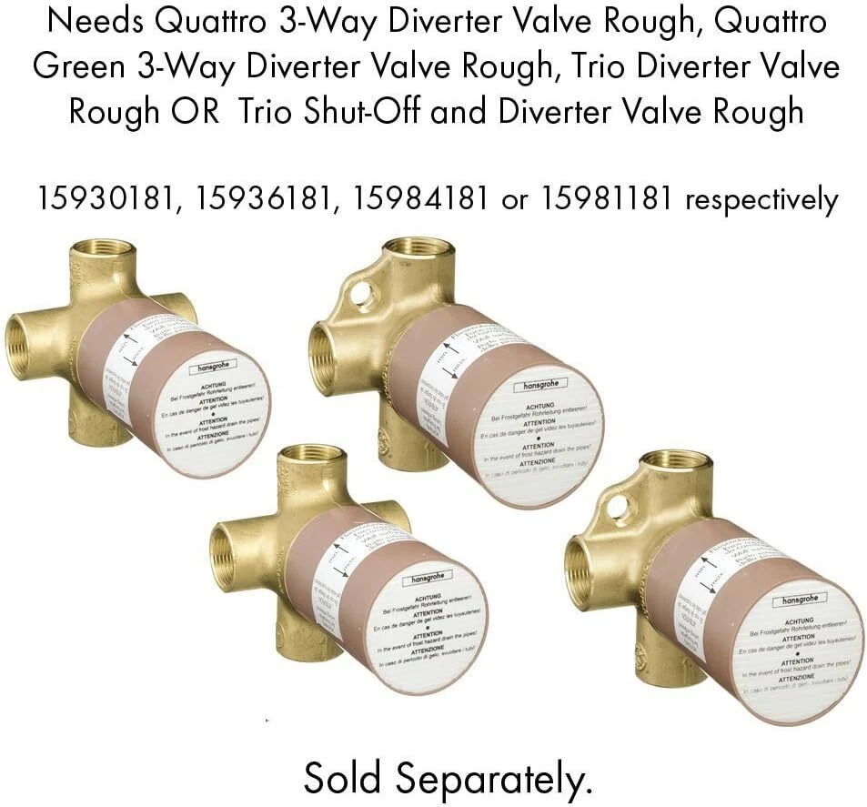 Store New Arrivals Add to Favorite View Feedback Contact Single Handle Shower Diverter Valve for 2 Outlets - Convenient Control Between Handheld Shower & Shower Head Single Handle Shower Diverter Valve for 2 Outlets - Convenient Control Between Handheld Shower & Shower Head Product Description: Single Handle Shower Diverter Valve for 2 Outlets - Convenient Control Between Handheld Shower & Shower Head Upgrade your shower experience with this single handle diverter valve , designed for easy control between two outlets such as a handheld shower and a showerhead . The intuitive design allows you to conveniently switch between your showerhead, tub spout, handshower, or other outlets with a simple turn of the handle. Perfect for any modern bathroom setup, this diverter valve ensures smooth operation and a hassle-free shower experience. Key Features: Two Outlets Control : Designed to divert water between two outlets such as a handheld shower and a shower head . Easily switch between them for a customizable shower experience. Easy to Use : The single handle design makes it simple to control water flow and switch between the handheld shower and showerhead, offering a convenient and user-friendly experience. High-Quality Construction : Built for durability, the diverter valve is designed to withstand daily use, ensuring long-lasting performance. Flexible & Versatile : Perfect for use in homes, hotels, or any space that requires easy water outlet control between different shower fixtures. Specifications: Material : Durable construction built to withstand daily wear and tear. Design : Single handle diverter for easy switching between outlets. Fits : Compatible with handheld showers, showerheads, tub spouts, and other shower fixtures. Why Choose This Diverter Valve? Convenient : No need to fumble with multiple controls – a single handle gives you complete control of your shower outlets. Easy Installation : Compatible with a variety of shower fixtures, making installation simple and straightforward. Durable : Made to last, the diverter valve is designed for longevity, ensuring it stands up to daily use without wear. FAQs: How does the diverter work? The single handle diverts water flow between the two outlets (e.g., handheld shower and showerhead), providing easy and convenient control. Can I use this for both a handheld shower and showerhead? Yes, this diverter valve is designed to easily switch between two outlets, including a handheld shower and a showerhead . Is this diverter valve easy to install? Yes, this valve is compatible with a variety of shower fixtures and is designed for easy installation. What material is the diverter valve made of? The diverter is made of durable materials, built to withstand long-term use and prevent damage from daily exposure to water. Item model number 34934001 Warranty Description , Inc. warrants to the original consumer purchaser that products will be free from defects in material and workmanship for as long as the original consumer purchaser owns both the product and the home in which the product was originally installed. For commercial purchasers, the warranty period is (a) one (1) year for products from the date of purchase. The warranty period for products in the Rubbed Bronze, Matte Black, Matte White finishes three (3) years from the date of purchase. This warranty is non-transferable. Because , Inc. is unable to control the quality of products sold by unauthorized sellers, unless otherwise prohibited by law, this warranty does not cover products purchased from unauthorized sellers. Authorized sellers can be found on branded websites. Additional warranty restrictions apply. See manufacturer website for full warranty details. Country of Origin Germany Batteries Included? No Outlet Connection Type FNPT Specification Met ADA Batteries Required? No Finish Chrome Material Brass Is Discontinued By Manufacturer No Item Package Quantity 1 Item dimensions L x W x H 2.88 x 4.13 x 4.13 inches Number of Handles 1 Item Weight 14.4 ounces Exterior Finish Chrome Part Number 034934001 Color Chrome Global Trade Identification Number 04011097623047 Included Components Diverter Trim Product Dimensions 2.88 x 4.13 x 4.13 inches PRODUCT DIMENSIONS : 4.13 inches x 2.88 inches x 4.13 inches. Weight: 14.4 oz About Us Welcome to Perishey, your premier destination for high-quality products at unbeatable prices. Our commitment to excellence ensures that you receive top-notch service and premium items across a variety of categories. Our professional customer support team is always ready to assist you with any inquiries or needs, ensuring a seamless shopping experience. We take pride in serving you and strive to bring a smile to your face with our exceptional service and products. Visit our eBay store to explore our full range of offerings and discover the great deals we have in store for you. Thank you for choosing Laelegencia. Payment policy We have eBay Managed Payments, allowing you to pay with any payment method that eBay accepts. Please ensure that your shipping addresses are accurate. Immediate payment is required before we can send out your package. Shipping policy We are always working hard to ensure your package arrives as soon as possible. Please understand that some factors like weather, high postal traffic, and the performance of shipping companies are outside of our control. In most cases, your package will arrive before due time as it is a high priority for us. If there are any unexpected delays, please let us know and we will take care of it immediately. We have multiple locations in the US; residents of these states will be charged tax according to the state they reside in. Tax information is available at checkout. Returns We are committed to your happiness. That’s why we offer a 30-Day Return Policy on items that you are not completely satisfied with. You have the option for a refund or an exchange of the item. No returns are available on items shipped outside of 