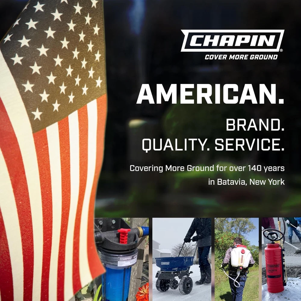 OUTDOOR USE: fits faucets with a ¾” GHT thread then connect your garden hose; use with inline sprinkler systems, standard sprinklers and other irrigation equipment SET AND SCHEDULE: duration, frequency, time delay allow you to decide how often and how little you want to water; set it to delay watering until a specified time; water at a specific time during the week or on multiple days; set the duration for how long it will run DURATION: 1, 3, 5, 10, 15, 20, 30, 60, 90, 120 minutes; ideal if there’s a drought and you need to limit water or watering specific plants and areas you don’t want to overwater FREQUENCY: 1, 2, 3, 4, 6, 8, 12 hours and 1, 2, 3, 7 days; ideal if you have a set schedule, know it’s going to be hot and dry or prefer to set it and forget it TIME DELAY: options to set desired watering time; ideal if you’d like to at specific times of the day or when you know you’ll have rain and additional watering isn’t needed CONSTRUCTION AND INSTALL: heavy-duty plastic and water-resistant, cover included; install above ground, vertically at the tap and it can handle an operating pressure up to 116 psi ACCESSORIES: backflow valves sold separately, 2 AAA batteries required (not included) Spending way more time watering your lawn than enjoying it? Over watering a concern and your garden can’t recover? Worried about conserving water while giving your lawn the care it needs when watering is restricted? Save time, enjoy your yard more and conserve water. Chapin makes it easy and affordable to add a water timer to your home garden system. Water timers regulate the amount of water consumed and can comply with municipal watering restrictions. Our 41001 programmable, motor driven water timer connects to any outdoor faucet with a ¾” GHT thread. Install it outside to control sprinklers or irrigation systems in your garden and yard. Simple, two dial display with dust cover. Always use clean freshwater with this unit between 34° and 140° F (1° C to 60° C).