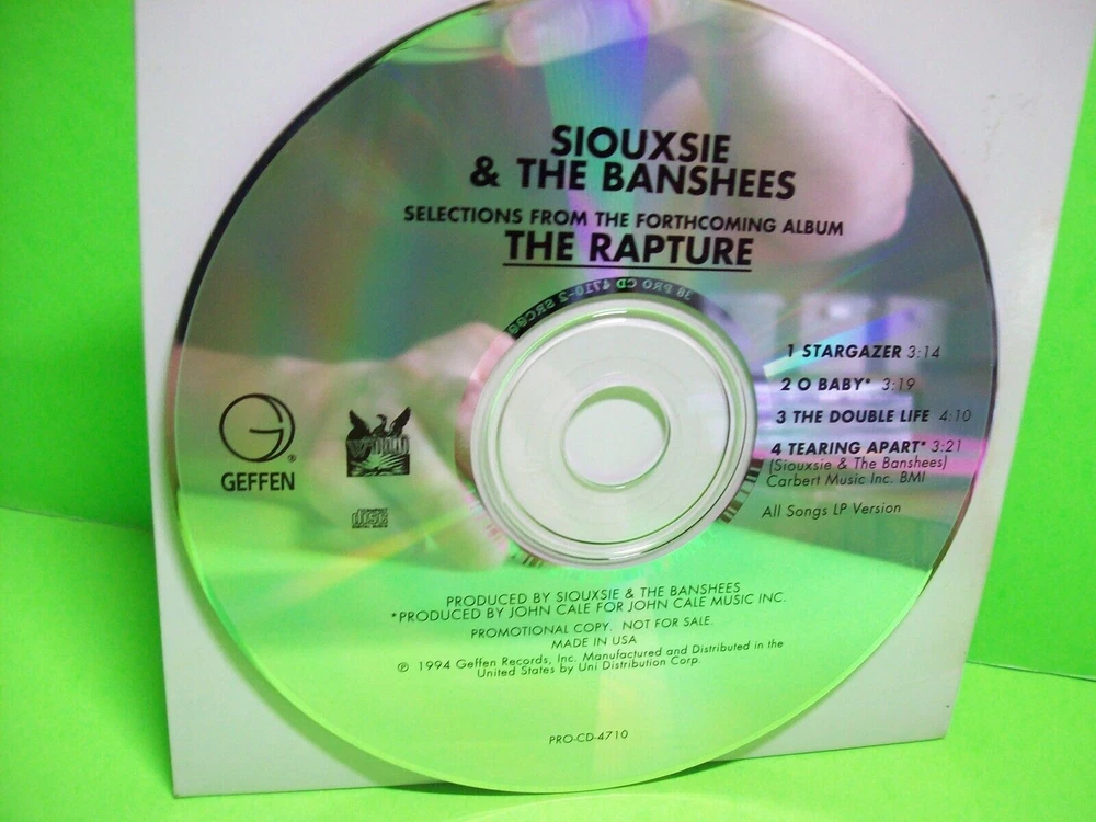 CD Grading:Very Good Plus (VG+)Features:Promo, SamplerEra:1990sStyle:Gothic/Darkwave, Post-Rock, Punk/New WaveInlay Condition:Very Good Plus (VG+)Format:CDArtist:Siouxsie and the BansheesCustom Bundle:NoCountry/Region of Manufacture:United StatesEdition:PromoType:EPUPC:Does not applyColor:SilverRelease Year:1994Modified Item:NoRelease Title:Selections From The Forthcoming Album The RaptureLanguage:Englishgtin13:Does not applyOccasion:AnyCase Condition:Very Good (VG)Record Label:Geffen Records – PRO-CD-4710Genre:RockCase Type:Paper Sleeve