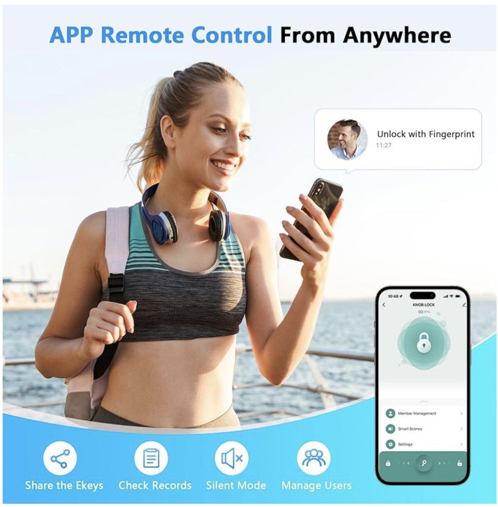Keyless Entry : Unlock your door with fingerprint, code, or smartphone app for maximum convenience and security.Up to 50 fingerprints and 50 sets of passwords can be stored at the door handle. Unlock quickly in one second, with a recognition rate of up to 99% Versatile Design : This smart lock can perfectly adapt to most standard doors and handles. Whether it's enhancing the security of your home, upgrading your office access system, or adding a modern touch to hotel rooms, this smart lock is the perfect choice. App Control : Manage access permissions, view entry logs, and control settings remotely via the companion app, And you can set a temporary password on the app to share with your friends or visitors. Security Protection : Sturdy zinc alloy body ensures long-lasting performance and protection for your home or office.The door lock has an automatic locking function, preventing the situation of forgetting to lock the door due to rushing to leave. Anti-Peep Door Code, prevent peeping, protect your password security. Easy Installation : Without professional assistance, simply follow the steps in the product manual and use a screwdriver to quickly replace existing locks without any wiring or permanent modifications. The simple installation process provides users with a convenient experience(The battery needs to be purchased separately by the buyer).