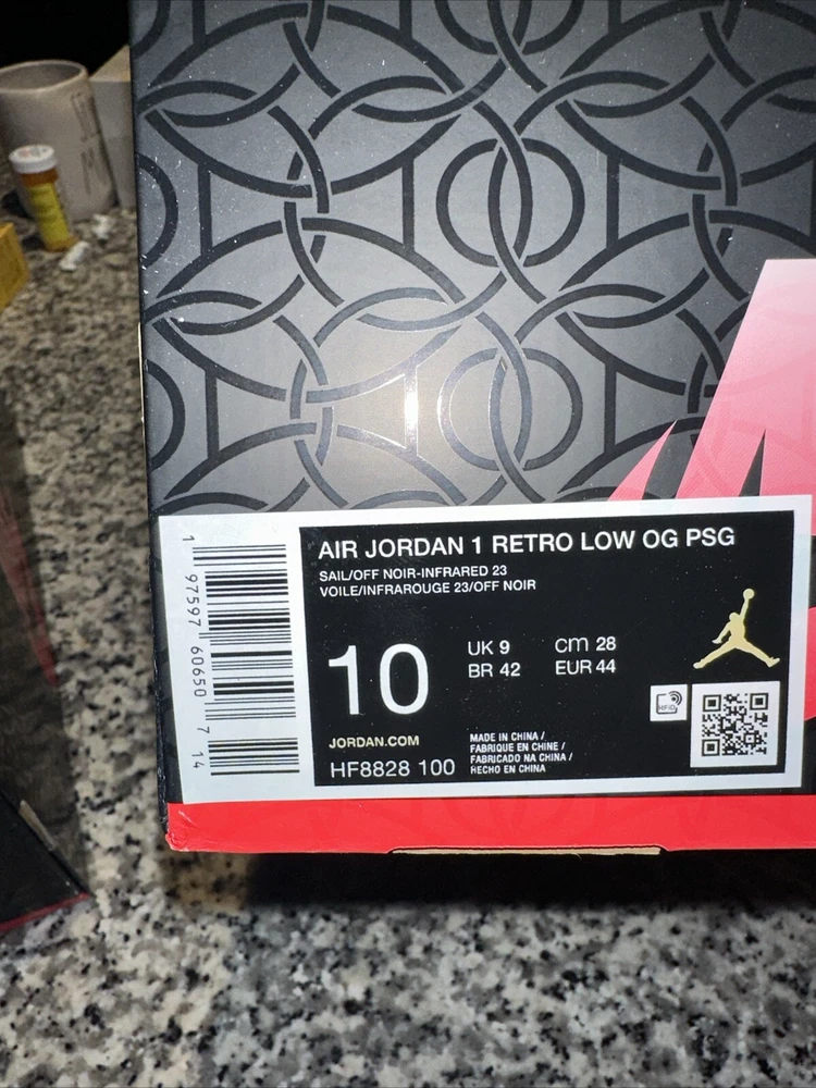 Step up your sneaker game with the Size 8.5 Paris Saint-Germain x Air Jordan 1 Retro OG Low Sail Pink Oxford. This stylish and comfortable sneaker features a Low Top Shoe Shaft Style and a Jordan 1 Retro Low Silhouette, perfect for any athletic occasion. The sneaker is made with high-quality Leather Upper Material and boasts a striking Red Color that is sure to turn heads. The Air Jordan 1 model has been a fan favorite since its introduction in 1992, and this collaboration with Paris Saint-Germain adds a unique touch to the iconic design. With a Style Code of HF8828-100 and a US Shoe Size of 8.5, this sneaker is perfect for any man who wants to make a statement with their footwear. Whether you're hitting the basketball court or just running errands around town, the Air Jordan 1 Retro OG Low Sail Pink Oxford is a must-have addition to your sneaker collection.
