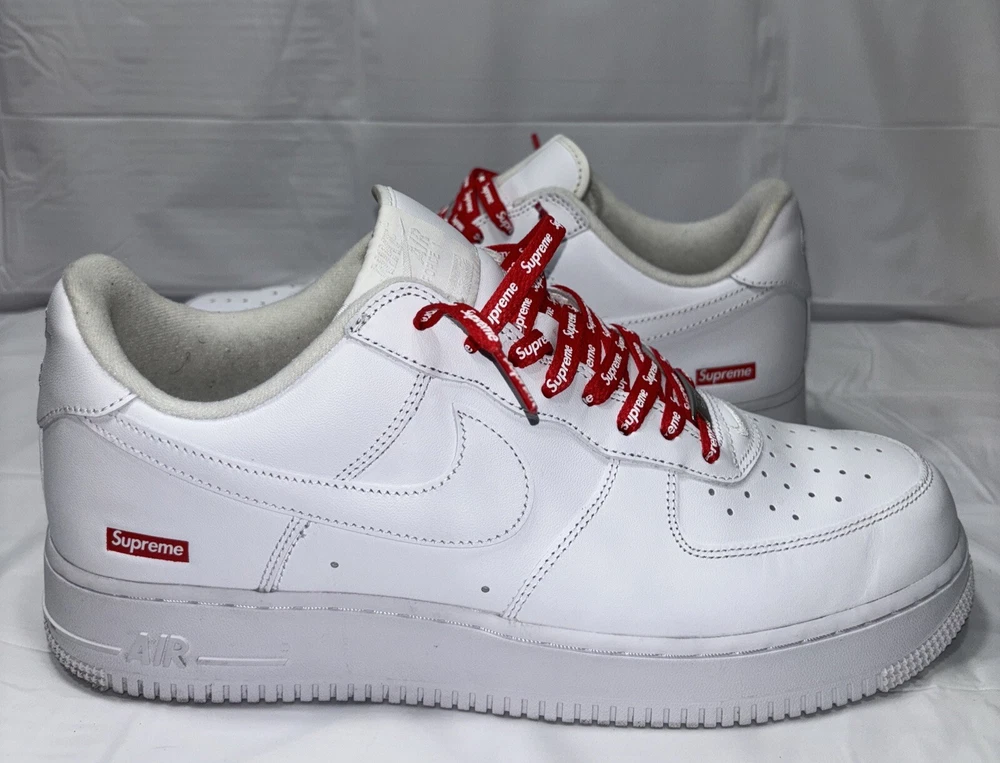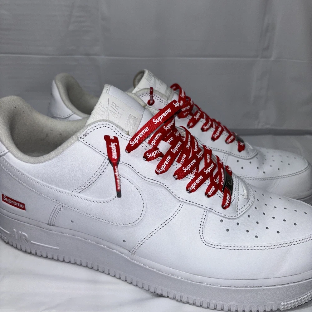 The manufacturer color is white, and the style code is CU9225-100. These shoes are part of the Nike Air Force product line, and they were released in 2020. Perfect for any athletic occasion, these sneakers are sure to turn heads. The box is the original one with the Supreme logo. They are very comfortable to use for everyday life. As used still in good condition, needs a little fresh up to bright again even more 😊 Please before purchasing feel free to reach out to us for any questions or to post more pictures.