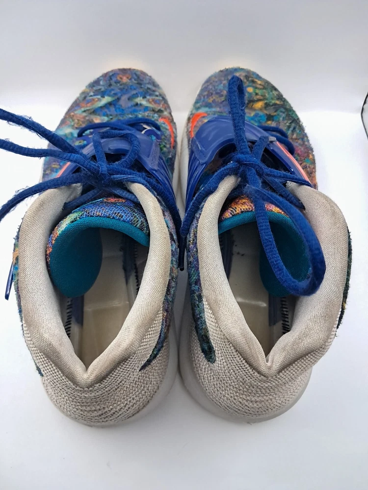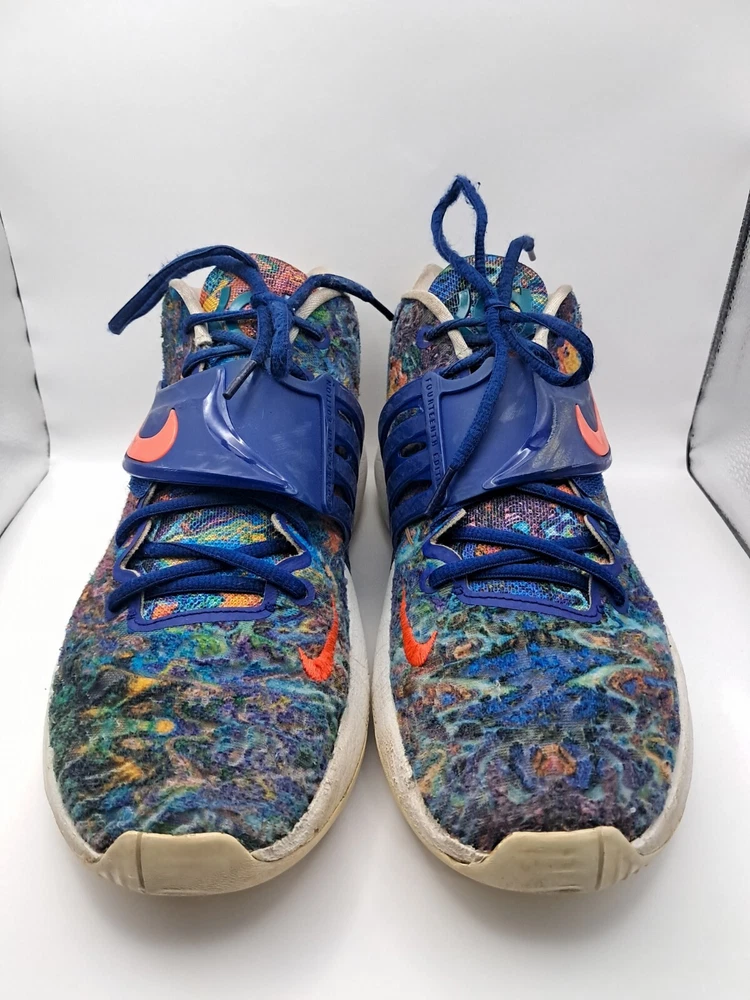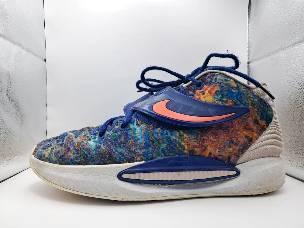 Condition: Pre Owned Size: 11 Flaws: No Insole & Heel Drag Elevate your game with the Nike KD 14 Psychedelic Kevin Durant Basketball Shoe. This limited edition sneaker boasts a colorful, solid pattern and a low top shoe shaft style. The shoe features lace-up closure, adjustable fit, breathable material, and a cushioned insole for ultimate comfort. Perfect for any occasion, whether it's activewear, casual wear, or workwear, these shoes are ideal for men who want to showcase their athletic side. With a rubber outsole and foam insole, these shoes provide excellent traction and support. The Nike KD 14 is part of the Nike KD product line and is designed to be a high-performance shoe for gym and training, track and field, weightlifting, boxing, cross training, crossfit, basketball, bodybuilding, running, and jogging.