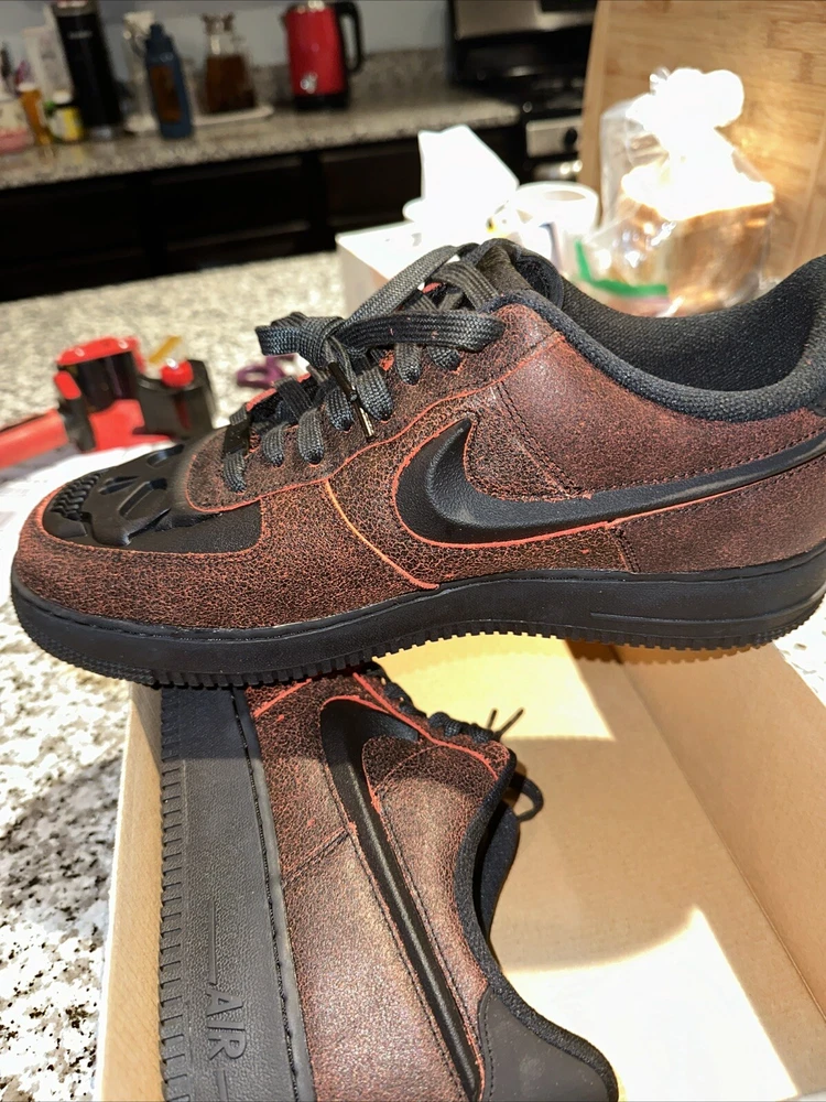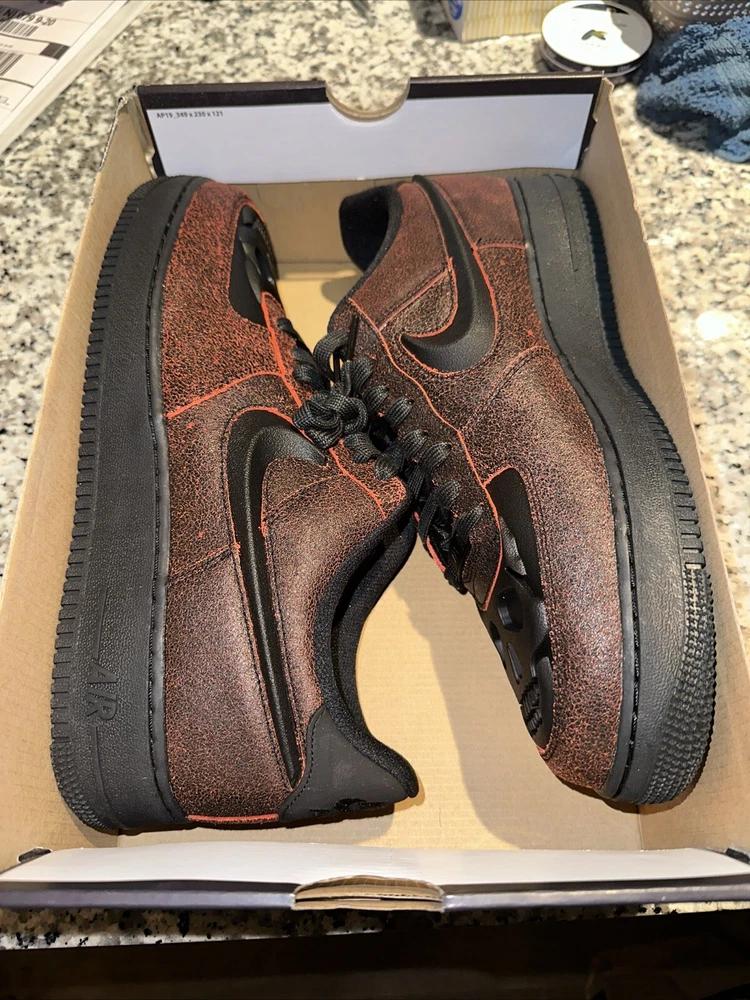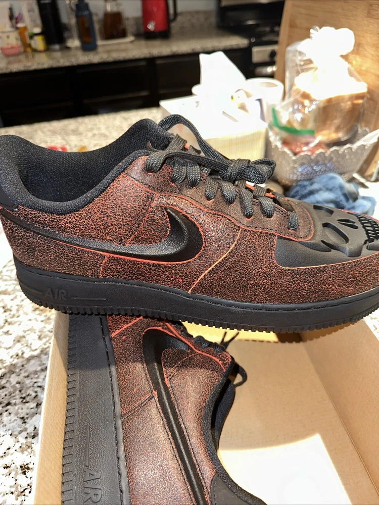 Elevate your sneaker game with these Nike Air Force 1 Low Halloween Skull sneakers. The red leather upper material is perfect for any spooky outfit and the low top shoe shaft style adds a touch of sophistication. The skull theme is edgy and unique, making these sneakers a must-have for any Nike lover. These athletic sneakers are perfect for any occasion, whether it's a day at the park or a night out with friends. The Nike Air Force 1 model is a classic and these sneakers are sure to make a statement. Get your hands on these sneakers today and step up your sneaker game.