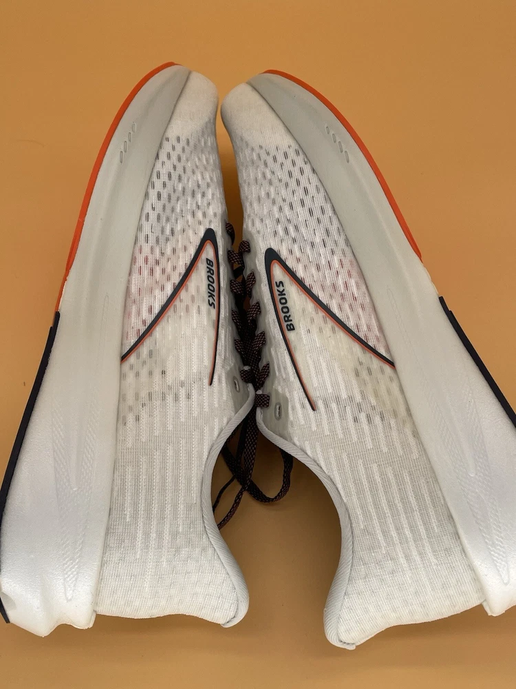 Elevate your running game with these Brooks Hyperion Max men's running shoes. Designed with comfort in mind, these sneakers feature a white, black, and nightlife color scheme and a lace-up closure for a secure fit. The nylon upper material and D shoe width make these shoes perfect for both casual and activewear occasions. With a UK shoe size of 12 and US shoe size of 13, these shoes are part of the Brooks Running product line and are customized to suit your needs. Whether you're a long-time runner or just starting out, the Brooks Hyperion Max model is the perfect choice for you.