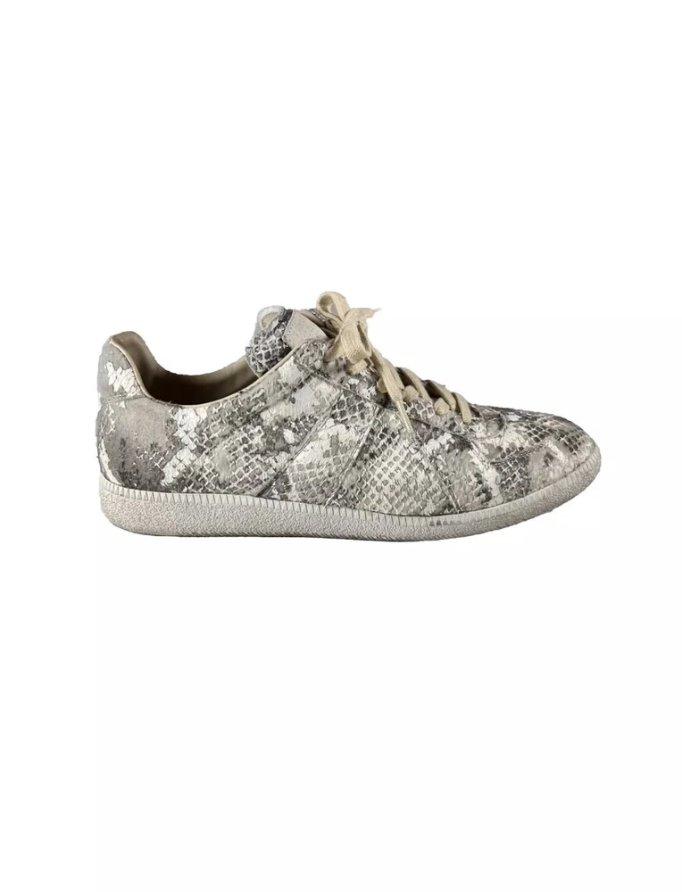 Maison Margiela Snakeskin GATs Size: 42 EU = 9 / 9.5 M US Color: White/Grey Condition: Used A personal pair from my collection i am sz9.5 fits perfect def can fit half sz down and maybe half sz up from 9.5, this is such a rare shoe with a illusion of snakeskin leather on pony hair/fur type of upper material which is soft, heel drag is at a slim minimum , good piece to rock everyday; hearing offers Any questions feel free to shoot me a message All items shipped ASAP🚨!!! Follow & Dm My bio for discount💯