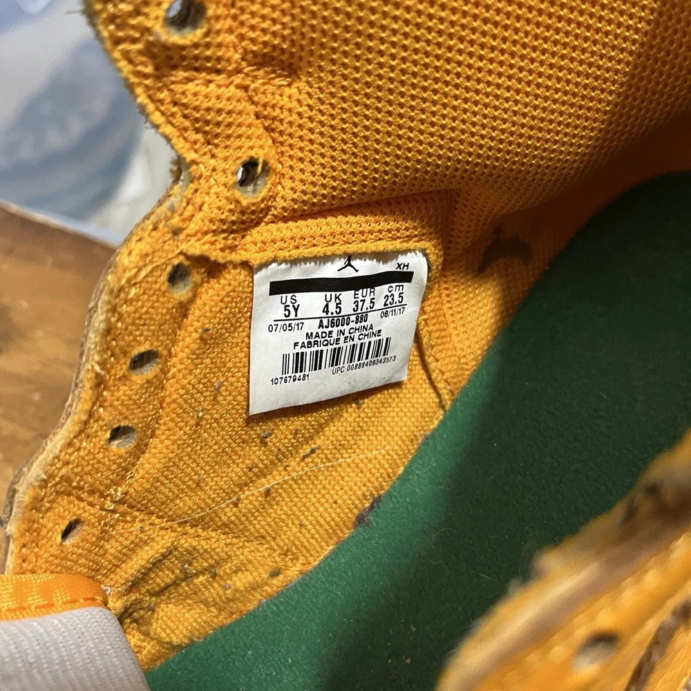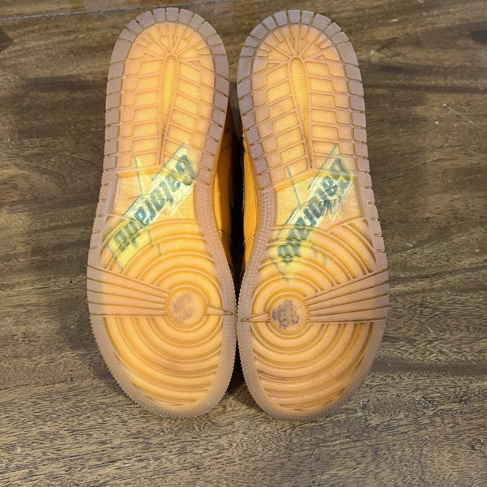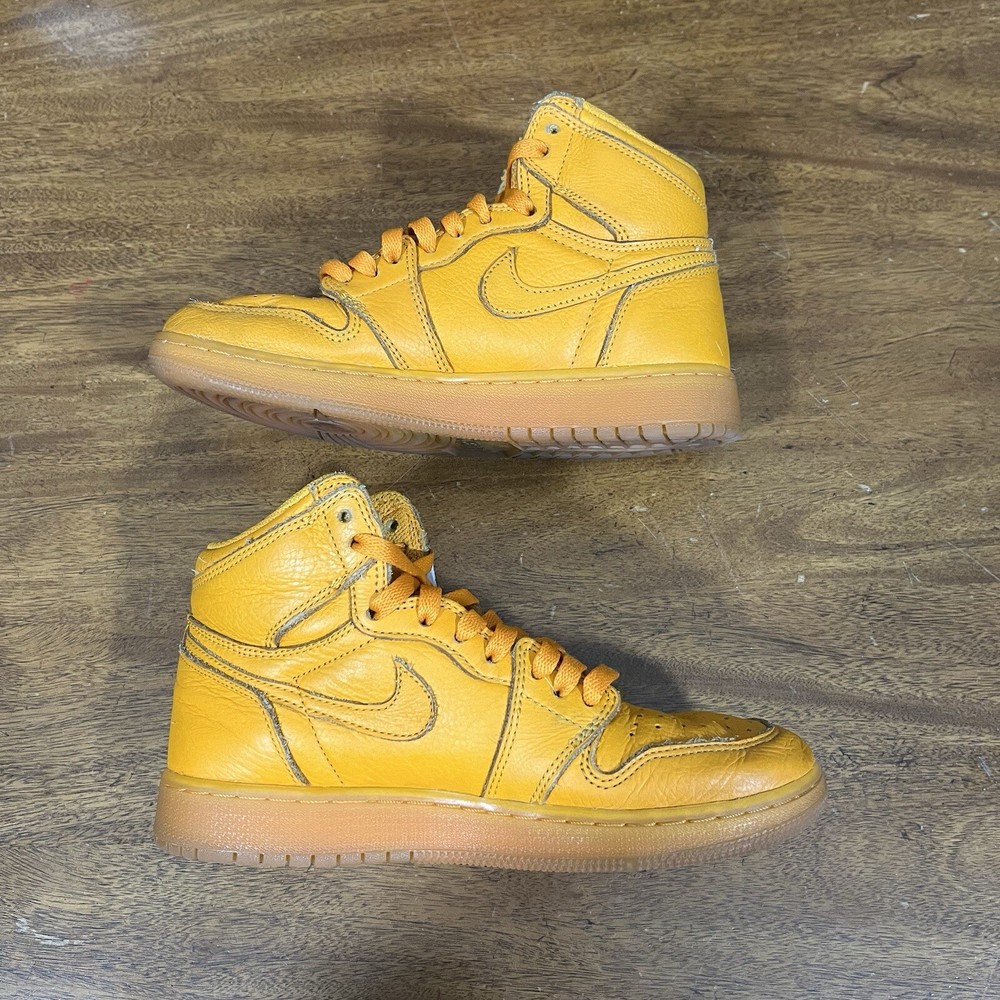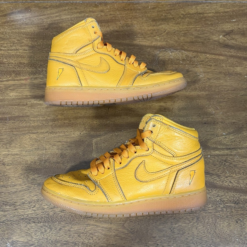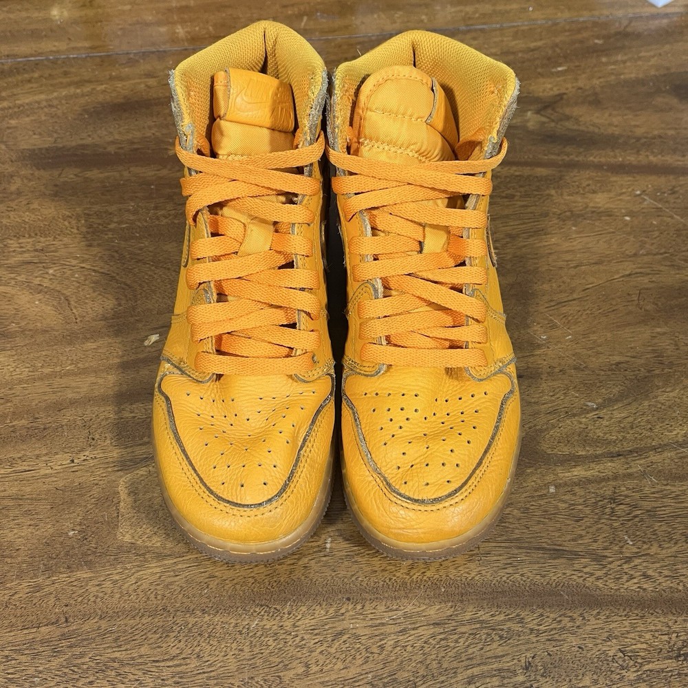 Jordan 1 High “Gatorade” size 5Y Pre owned, cleaned, creasing on the toe box, markings on the soles, comes in original box (box has damage) , comes with two extra laces, towel, and hand tag