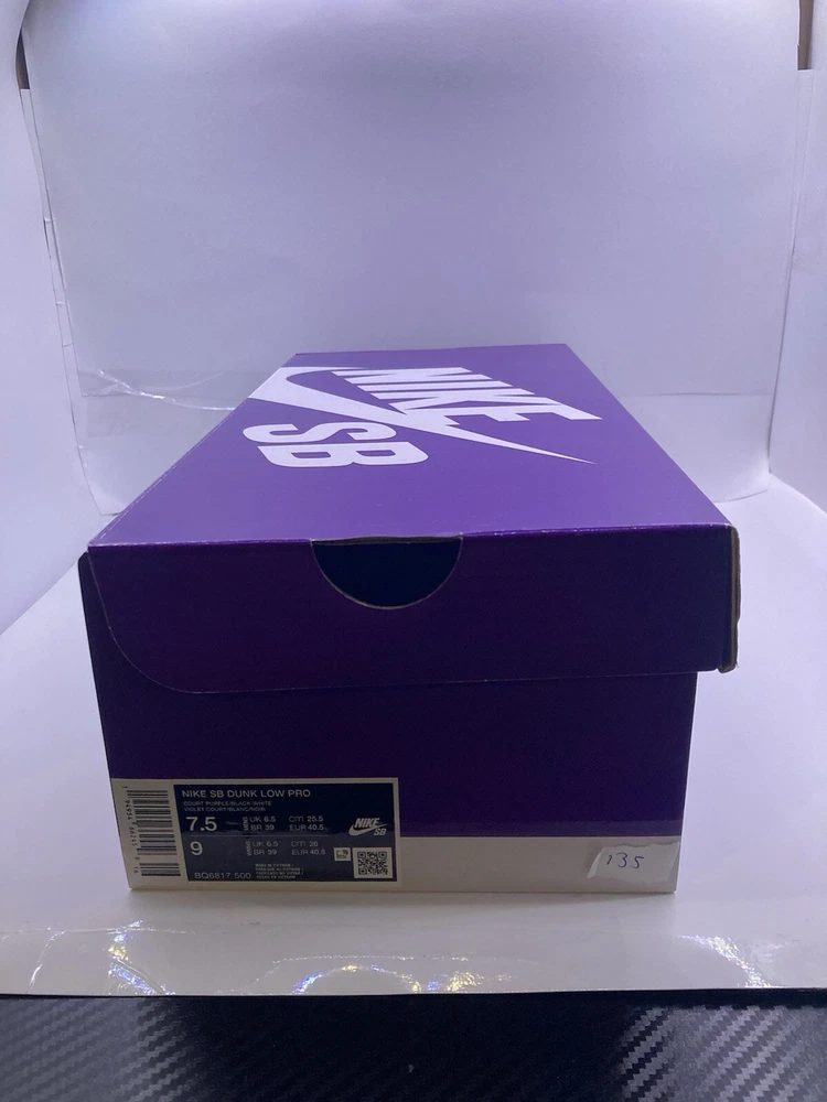 Elevate your skate experience with the Nike Dunk SB Low in Court Purple, a sleek blend of style and functionality. The size 7.5 sneakers feature a durable leather upper that offers both comfort and longevity, ensuring that your feet stay supported whether you're cruising the streets or hitting the skate park. Crafted with the iconic Court Purple colorway, these kicks are accented by crisp white and black details, creating a striking contrast that's sure to turn heads. The low-top design provides a classic silhouette that's versatile enough to pair with any casual outfit, making them a must-have addition to your footwear collection.