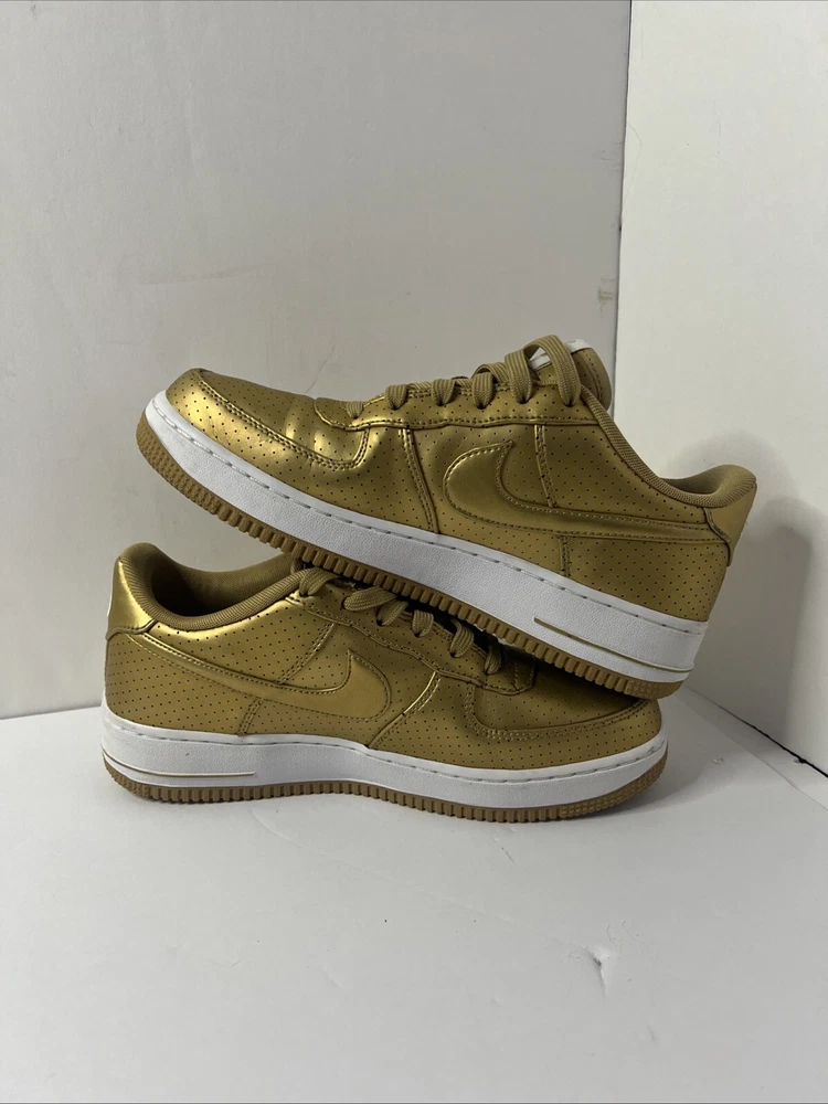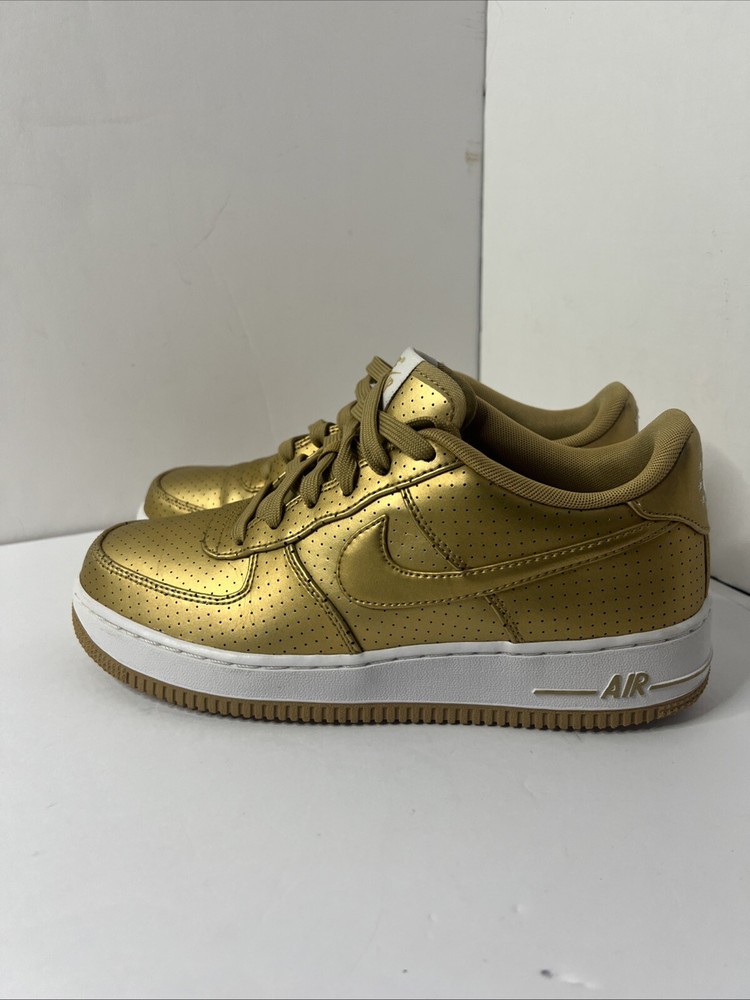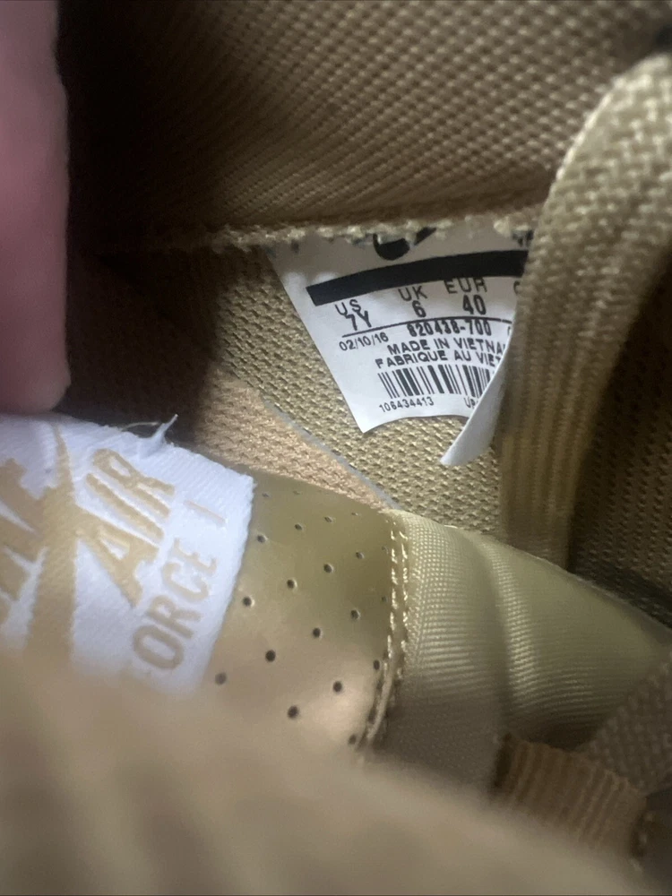 Product Line:Nike Air ForceBrand:NikeDepartment:MenColor:GoldStyle:SneakerStyle Code:718152-700US Shoe Size:7Type:AthleticShoe Shaft Style:Low TopModel:Nike Air Force 1