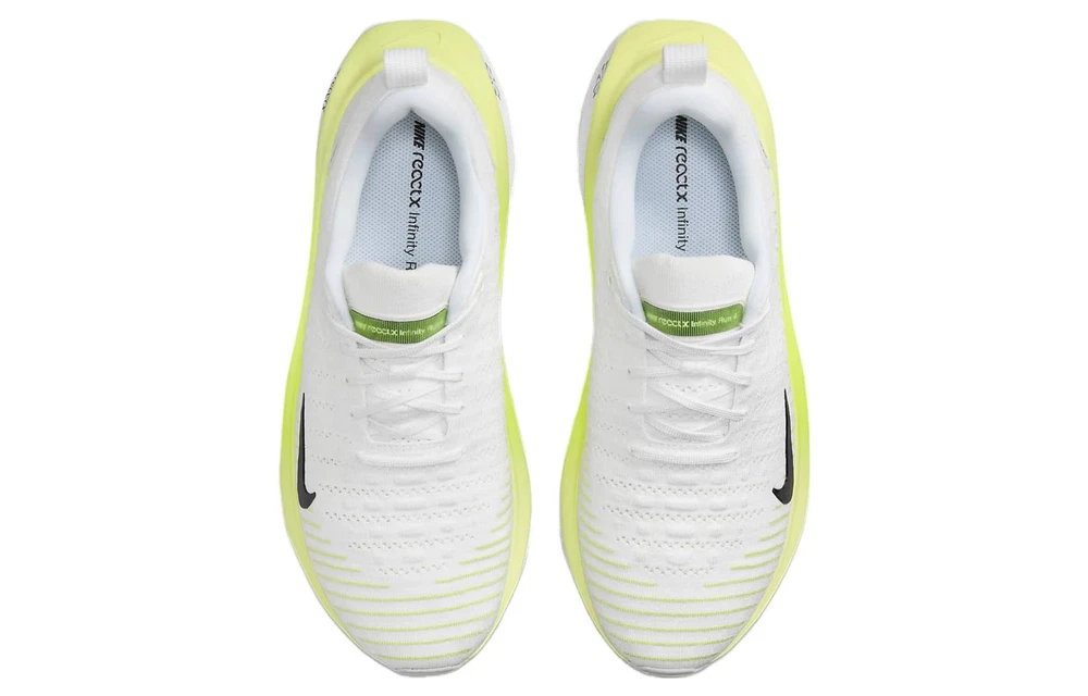 Elevate your running experience with the Nike ReactX Infinity Run 4 Low sneakers. These sneakersve been worn ONLY ONE TIME and feature a stylish white, yellow, and black colorway with a low top shoe shaft style and lace-up closure. The FlyKnit upper material and Sofsole Performance Inserts provide comfort and support, while the Nike Reactx Infinity Run product line ensures durability and reliability. These sneakers are perfect for men who enjoy athletic activities and want to make the most out of their workout routine. The Nike ReactX Infinity Run 4 Low sneakers are a must-have for anyone looking for a comfortable and stylish pair of sneakers. They have a pair of sofsole performance insoles for longer sturdier more comfortable walk or run and allows your feet to perform longer without hurting. I paid around $40 for the insults and over $140 for the sneakers myself. I accidentally ordered the wrong size so I wore them jogging to see if I could wear them and they're just too big .