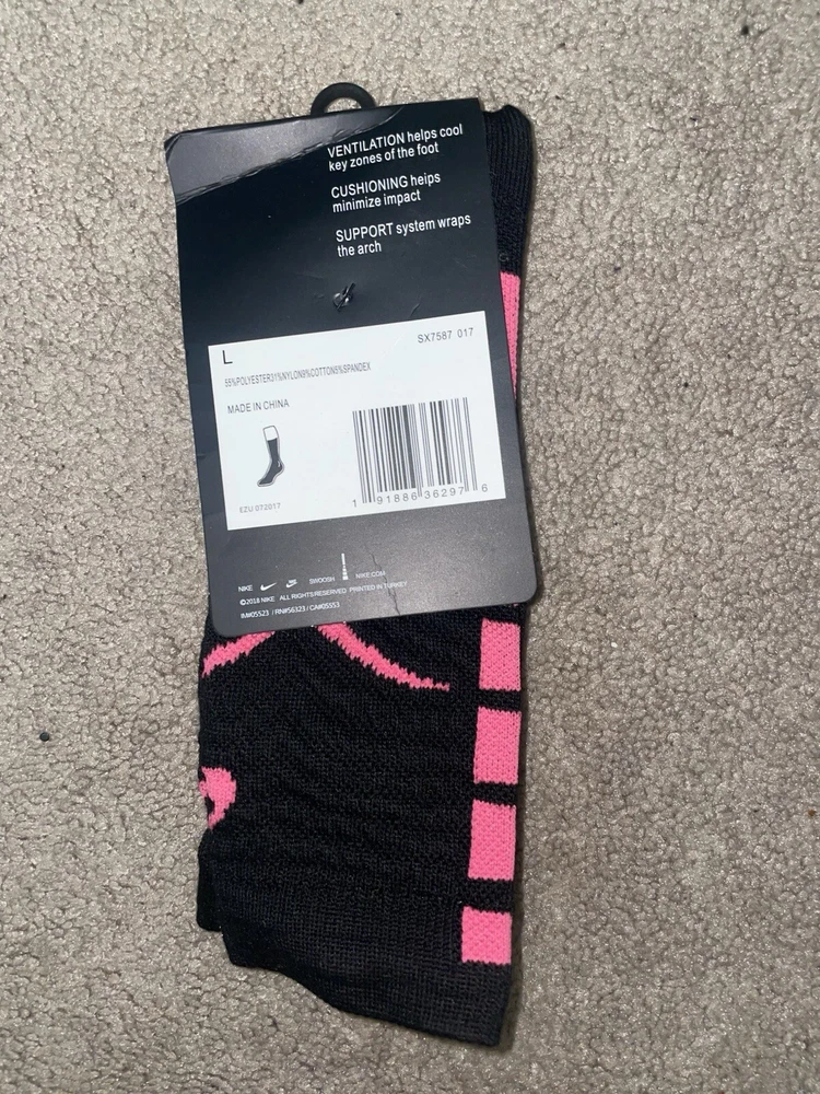 Size 8-12-Nike Elite DriFit NBA Kay Yow Give Strength Basketball Crew Socks Pink