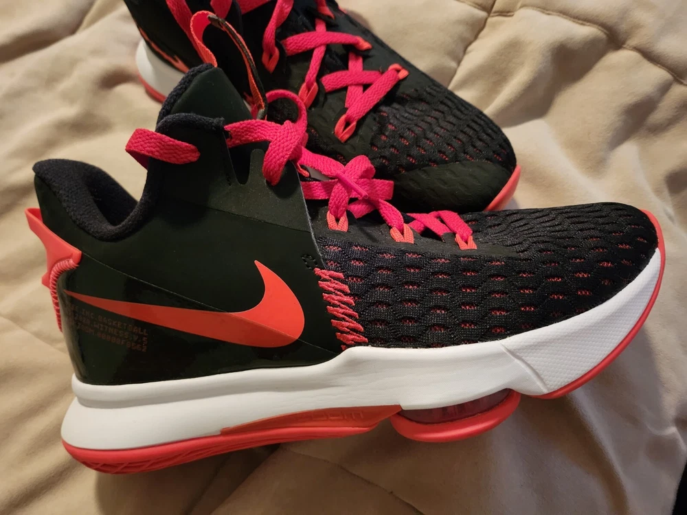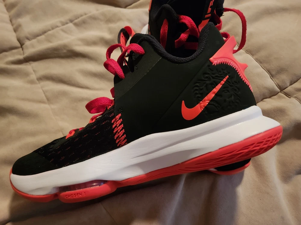Elevate your sneaker game with these Nike LeBron Witness 5 Bred sneakers. These shoes are perfect for any athletic occasion with its comfortable mesh upper material and breathable design. The black and university red colorway, along with white and bright crimson accents, will make a bold statement wherever you go. the shoes do show a little wear on the soles, but not alot. they have alot of tread left and vibrant color. there are no tears or defects. These sneakers are part of the Nike LeBron product line and feature the iconic Bred nickname. The style code is CQ9380-005, and it was released on January 14, 2021. Whether you're hitting the gym or just running errands, these Nike LeBron Witness 5 Bred sneakers are a must-have for any sneakerhead.