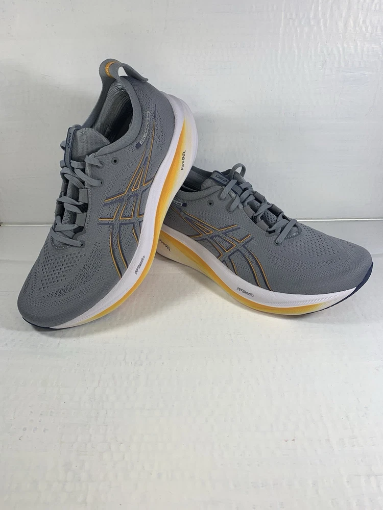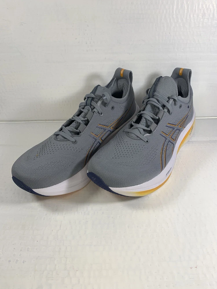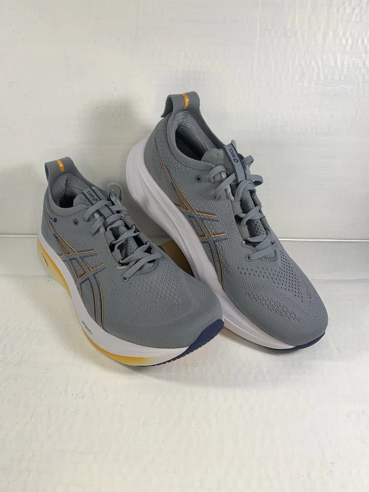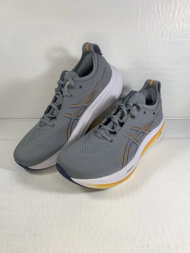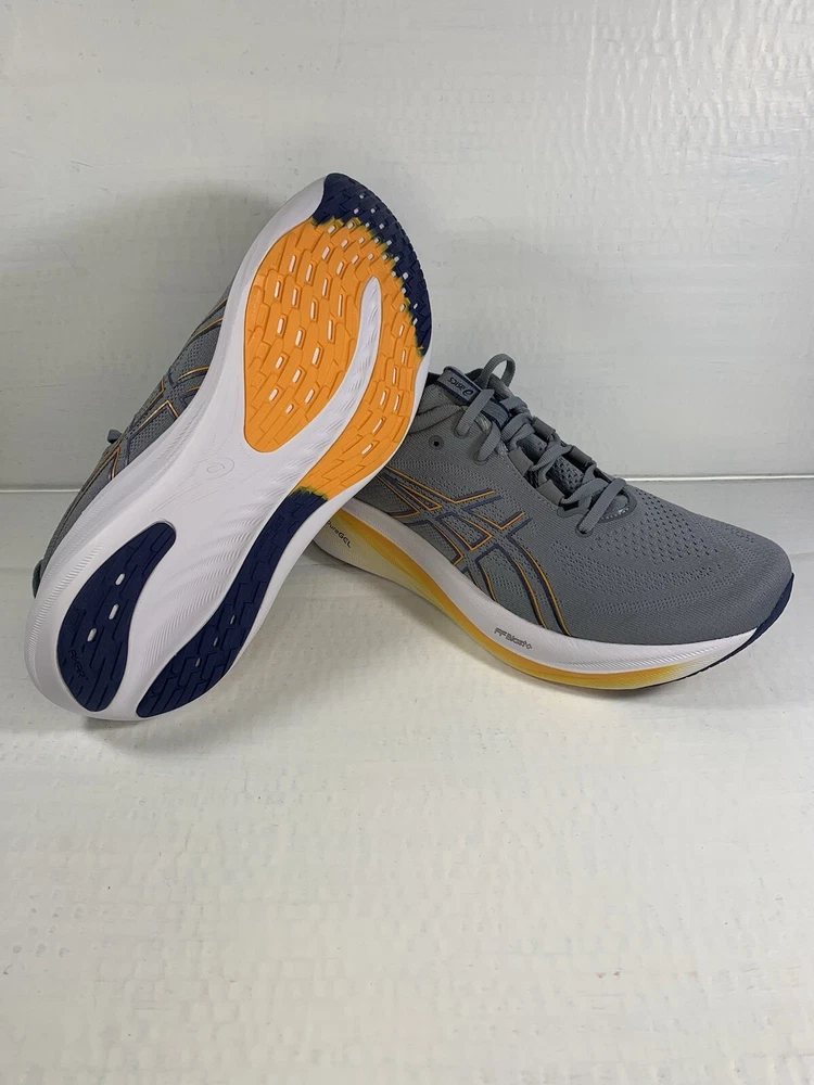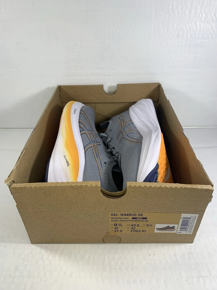 Size 9.5 - ASICS Gel-Nimbus 26 (Gray/Orange) Men's Running Shoes