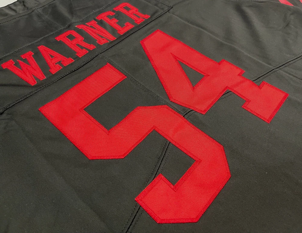 Size L Fred Warner #54 49ers Vapor Black Sewn Stitched Jersey. Brand New And Never Worn. Stitched Letters And Numbers. Size Tag = L. If size pictured is different than the post listed, it's because I have multiple sizes of the exact same jersey. Just feel free to contact me if you need other size. *** Processing/handling time is 3 business days.*** Plus approximately 8-10 business days for delivery. For a total of about 10-15 business days, VIA USPS. *** If you cannot accept this timeline, please do not place the order, Thank you.***