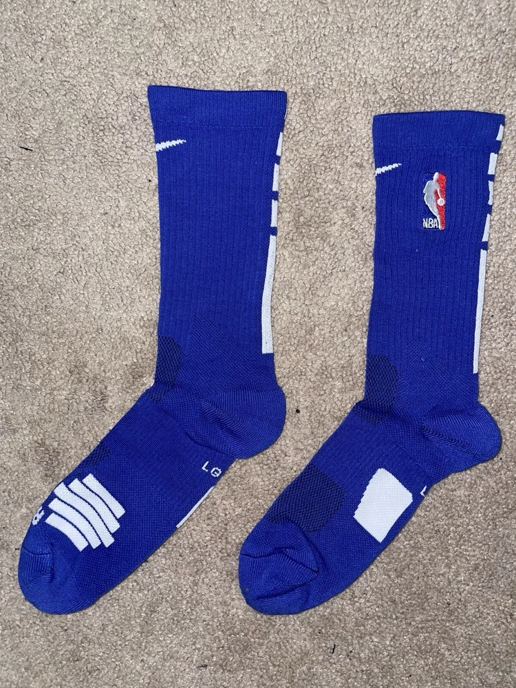 Size Large or 8-12 Mens-Nike Elite Dri-Fit NBA Basketball Crew Socks Blue/White