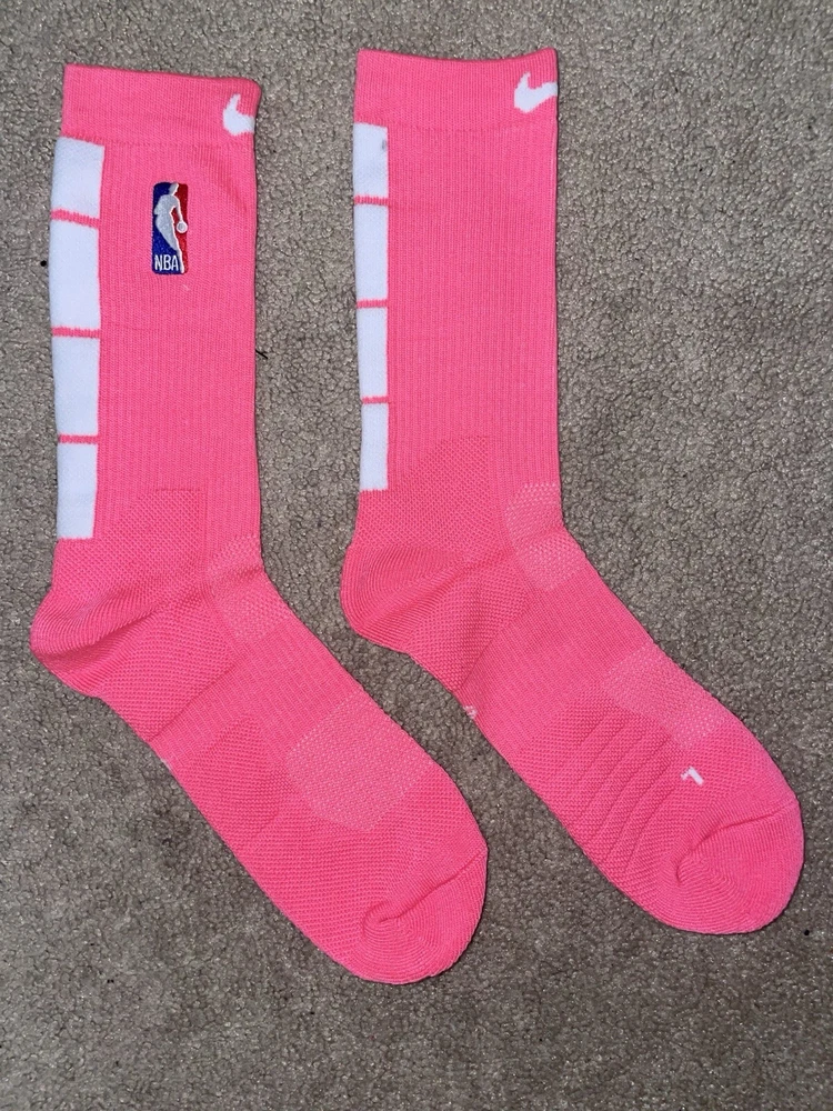 Size Large or 8-12 Mens-Nike Elite Dri-Fit NBA Basketball Crew Socks Pink/White