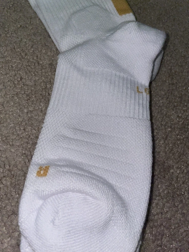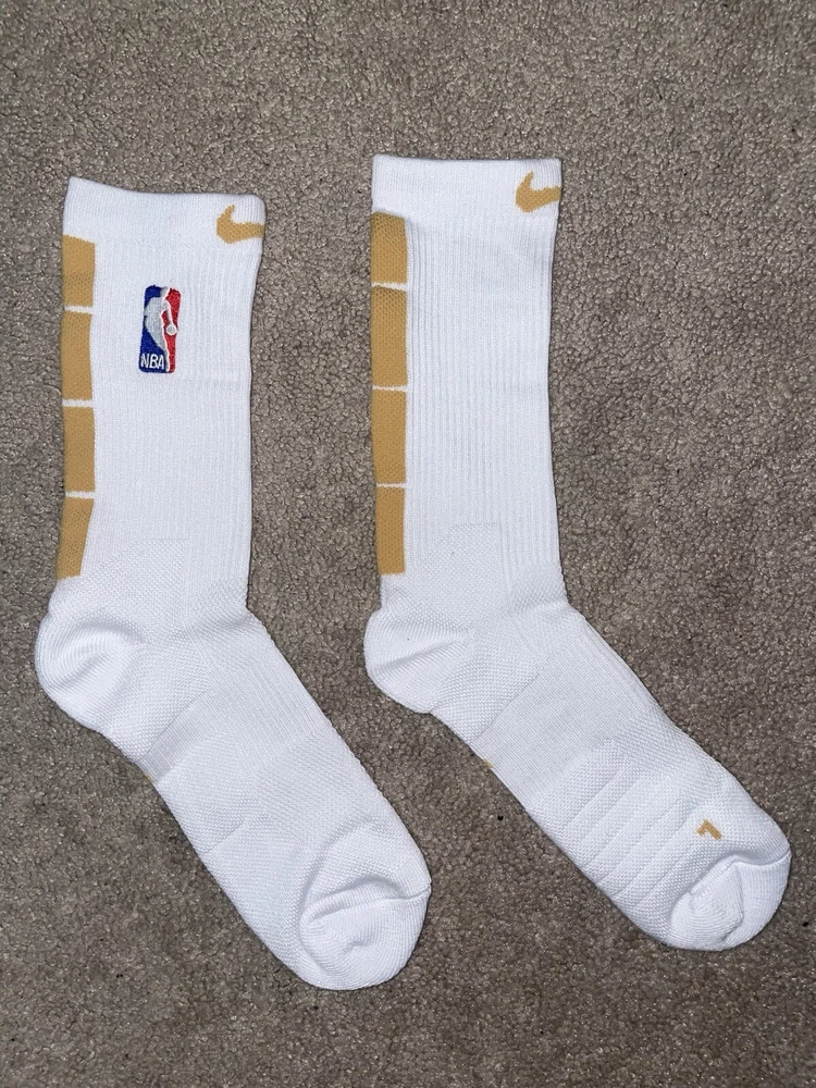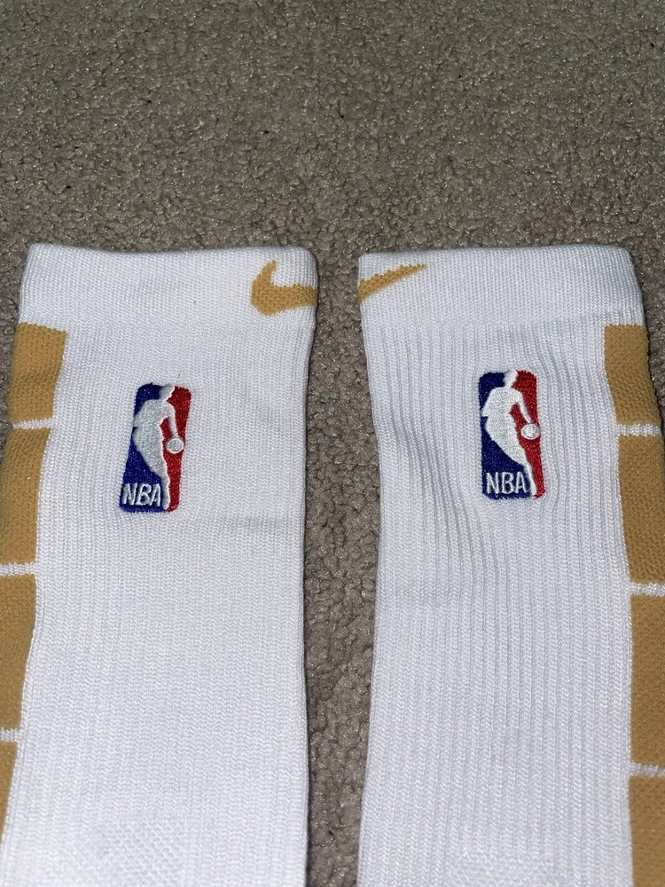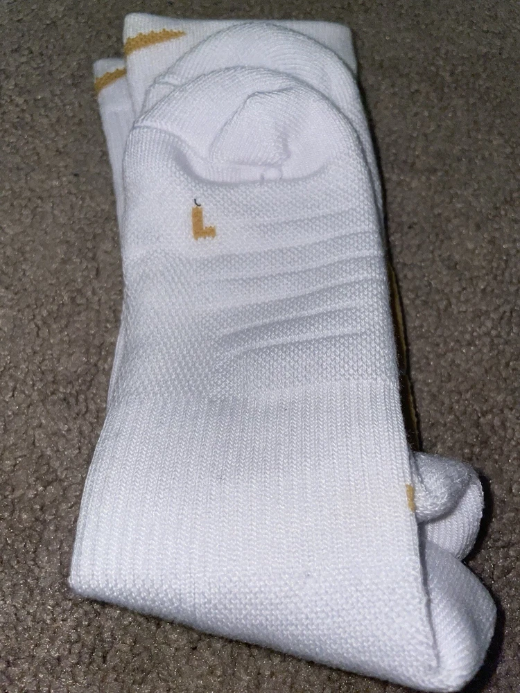 Size Large or 8-12 Mens-Nike Elite Dri-Fit NBA Basketball Crew Socks White/Gold