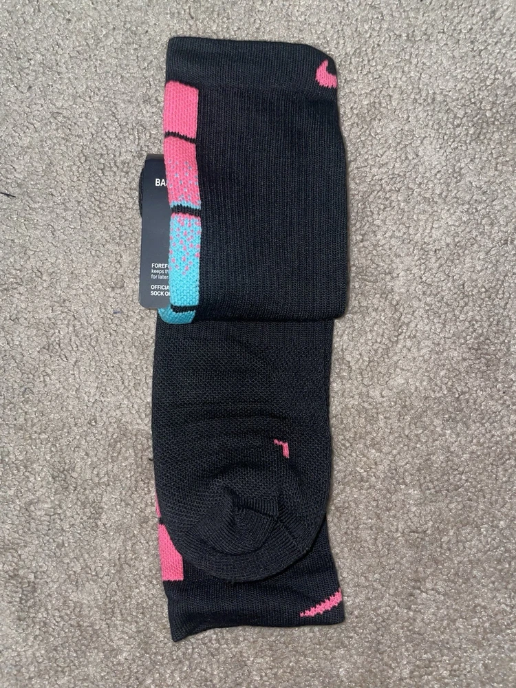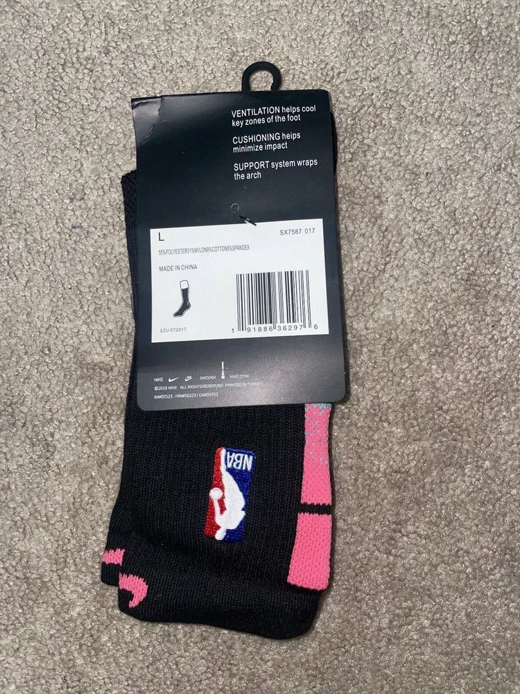 Size Large/8-12m - Nike Elite Dri-Fit NBA Basketball Crew Socks Black/Multi