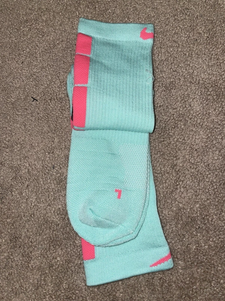 Size Large/8-12m - Nike Elite Dri-Fit NBA Basketball Crew Socks Turquoise/Pink