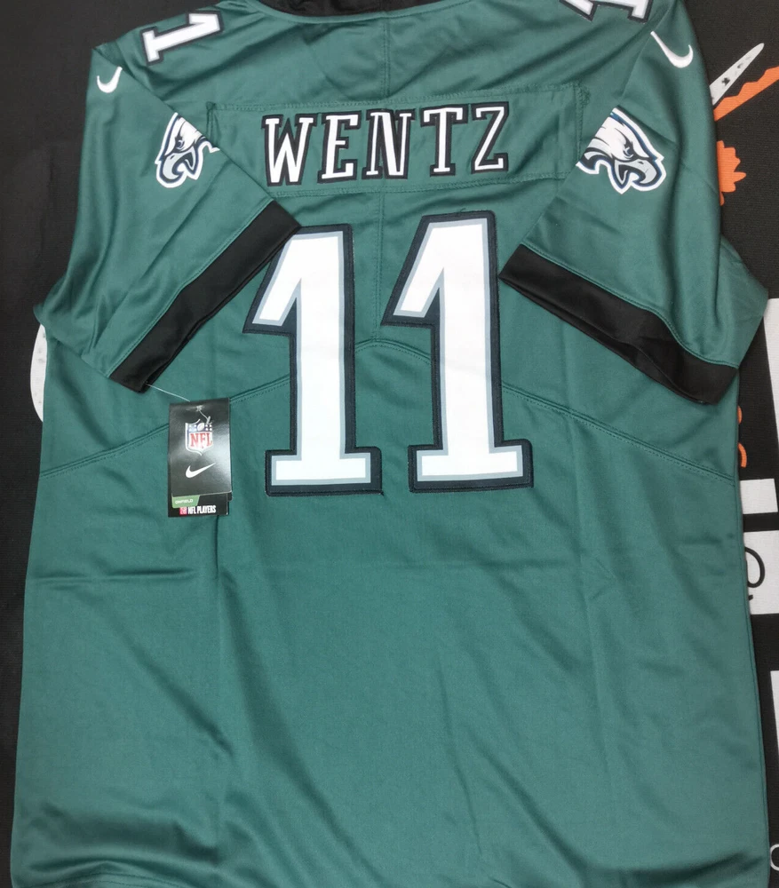 Size Small Carson Wentz #11 Eagles Vapor Green Stitched Jersey. Brand New And Never Worn. Stitched Letters And Numbers. Size Tag = Small. If size pictured is different than the post listed, it's because I have multiple sizes of the exact same jersey. Just feel free to contact me if you need other size. *** Processing/handling time is 3 business days.*** Plus approximately 8-10 business days for delivery. For a total of about 10-15 business days, VIA USPS. *** If you cannot accept this timeline, please do not place the order, Thank you.***