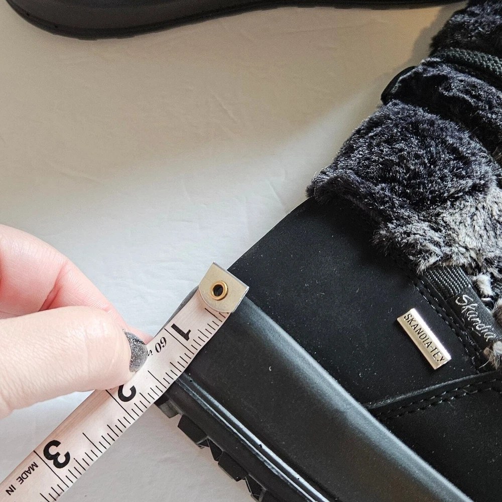 Skandia Faux Fur Lace Up Boot Super Grip Women's EU 38 Winter For unquestionable chic style from the slopes to the city, slip on the Skandia Boots for a delightfully warm and stylish trek through the snow. Skandia-Tex Super Grip bottoms Shearling lining Lace up around the ankle Colors - Black gray Women's EU 38 Heel is about 1.5" with a 1" platform Excellent pre-owned condition, no rips, tears or stains. Looks unworn. Smoke free, dog friendly home. chic unique winter wardrobe comfort warmth ski