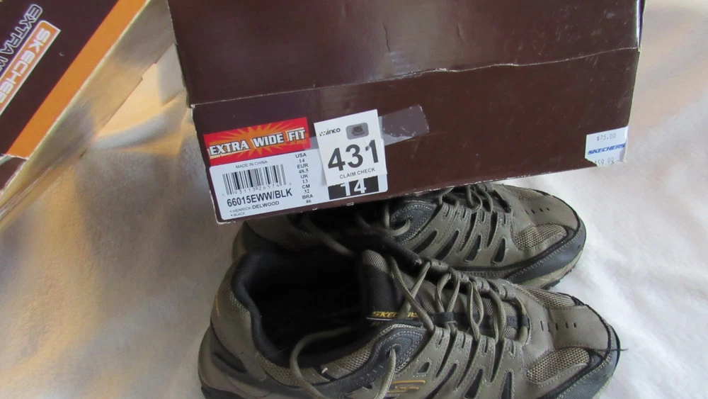 A true classic gets even better with Skechers After Burn - Memory Fit. This lace-up trainer features a leather, synthetic and mesh upper with cushioned Memory Foam insole. Size: 13 Fit: extra wide Condition: preowned in good condition