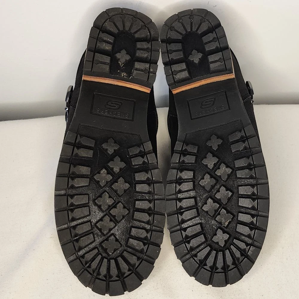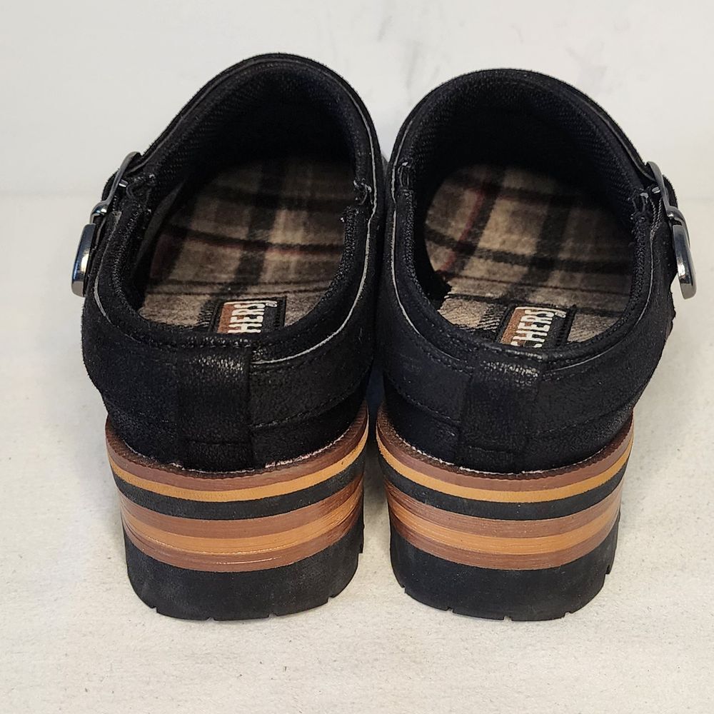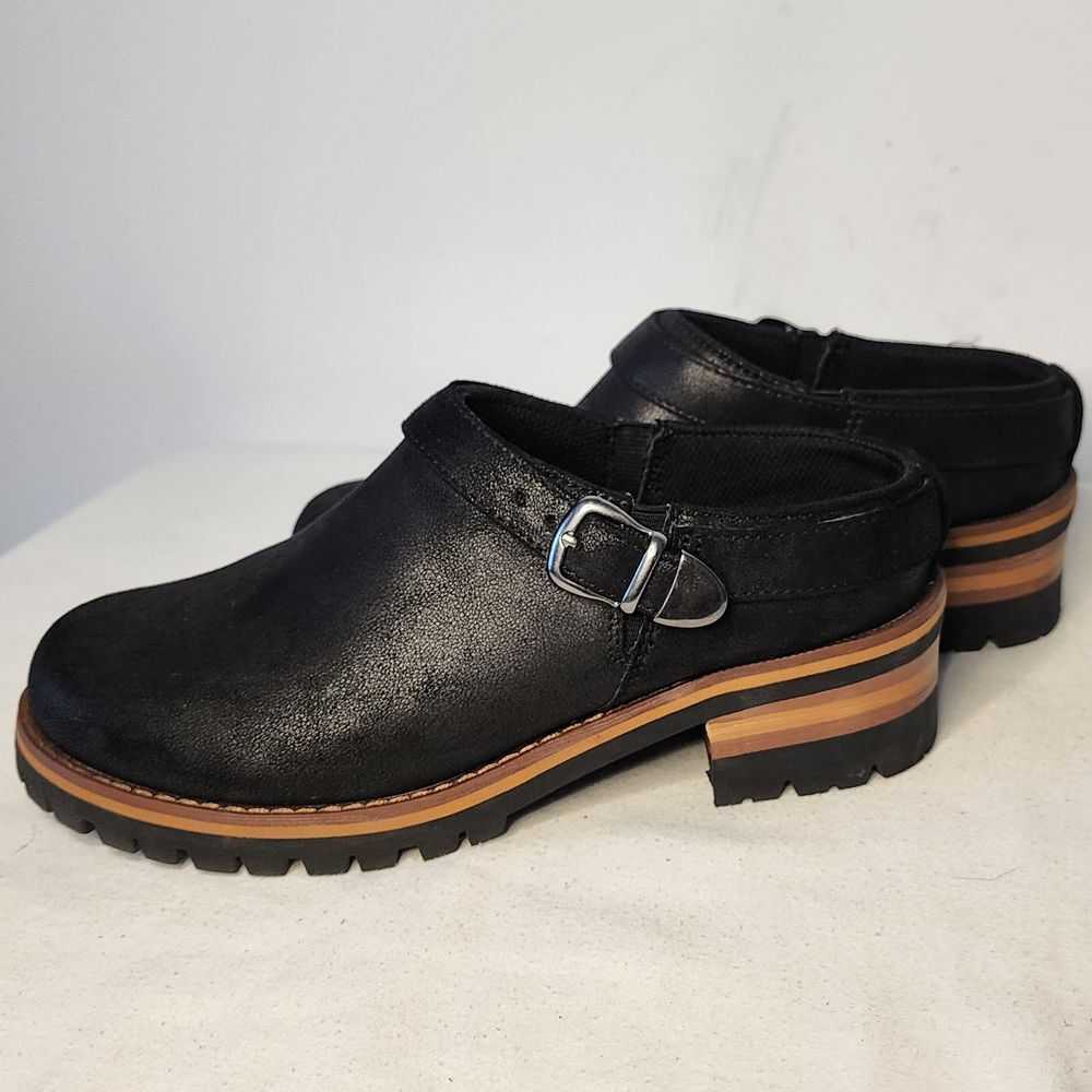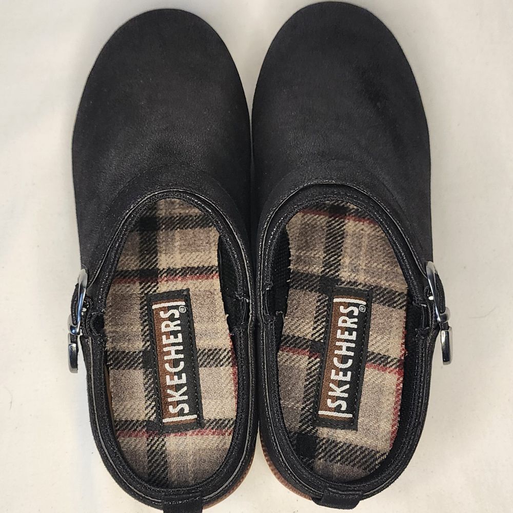 Stylish and comfortable black clogs featuring a plaid-lined interior and chunky platform sole. Perfect for casual outings, work, or running errands. The buckle detail adds a fashionable touch while the rugged sole provides excellent traction. These versatile mules combine comfort with contemporary style. Character: Comfort, Urban, Professional, Classic, Explorer Model: Skechers Balance Platform Clog Heel Height: Low (1-1.9 in) Style: Clog Color: Black Department: Women Type: Casual Upper Material: Leather UK Shoe Size: 4.5 EU Shoe Size: 37 Lining Material: Fabric Pattern: Plaid Keywords: skechers clogs, platform mules, black leather clogs, comfort shoes, plaid lined, chunky sole, buckle detail, casual shoes, slip on shoes, work shoes Clean and in great condition, with no snags, tears, or pilling. From a smoke-free home.