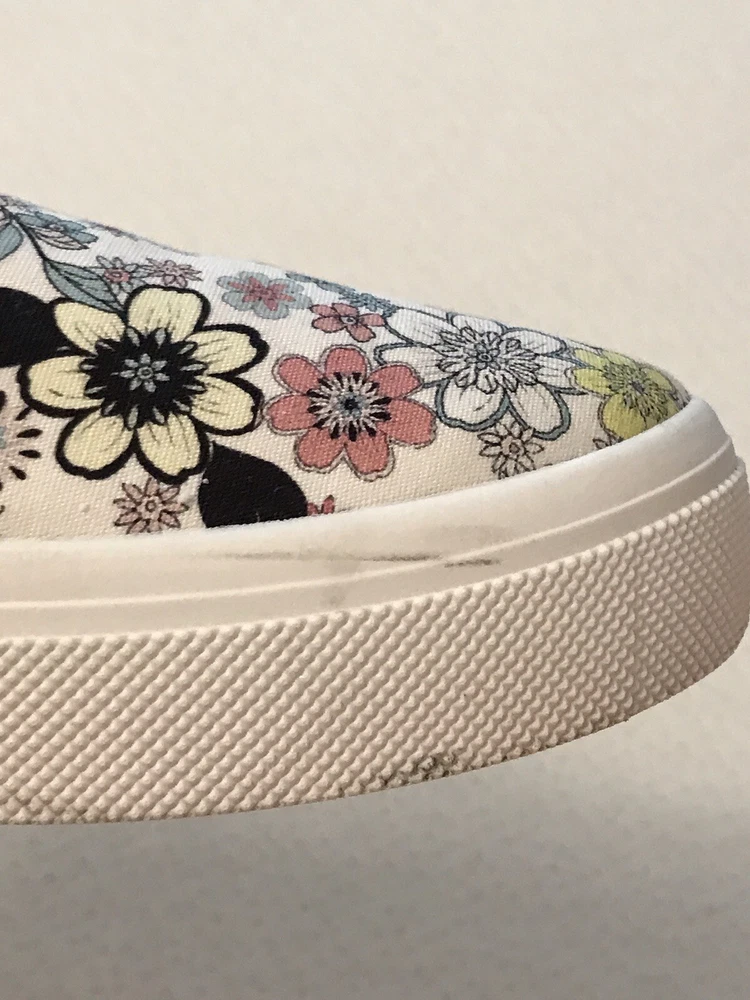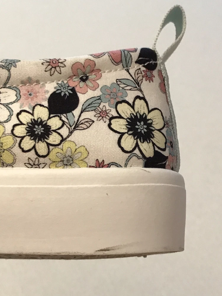 Elevate your style with these charming Skechers boat shoes! Featuring a vibrant floral pattern, these sneakers are perfect for any occasion - whether you're traveling, working out, or just running errands. The round toe and low heel provide both comfort and style, while the pull-on closure makes them easy to wear. Made with memory foam and breathable fabric, these shoes are perfect for those long walks or workouts. The rubber outsole ensures durability and longevity, while the cushioned insole provides added comfort. Available in US size 8.5, these preppy and colorful sneakers are a must-have for any shoe collection. In a smoke free home.