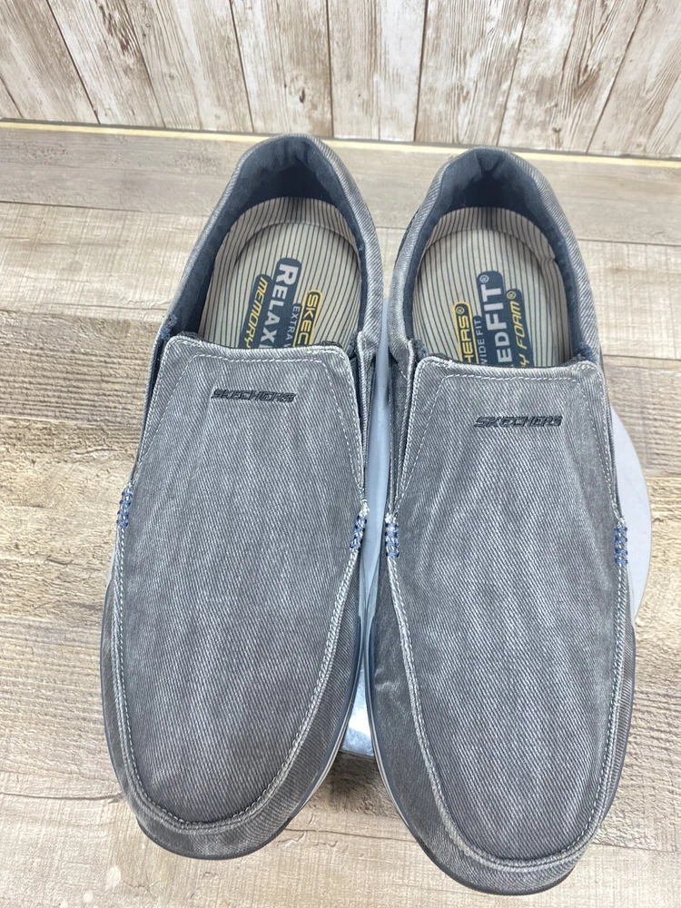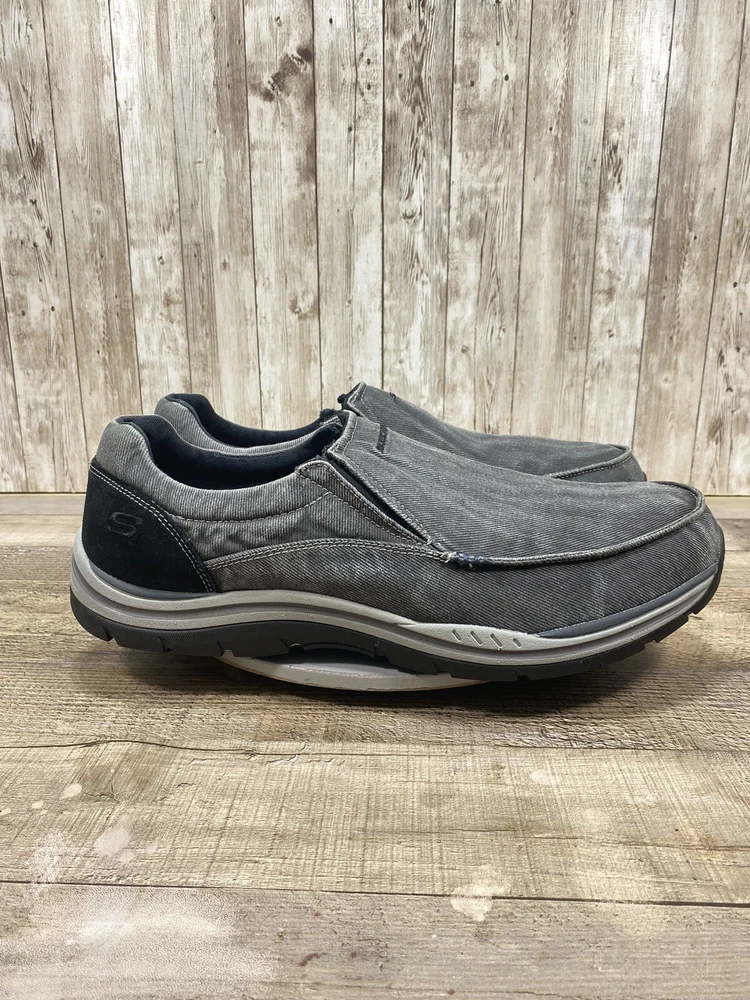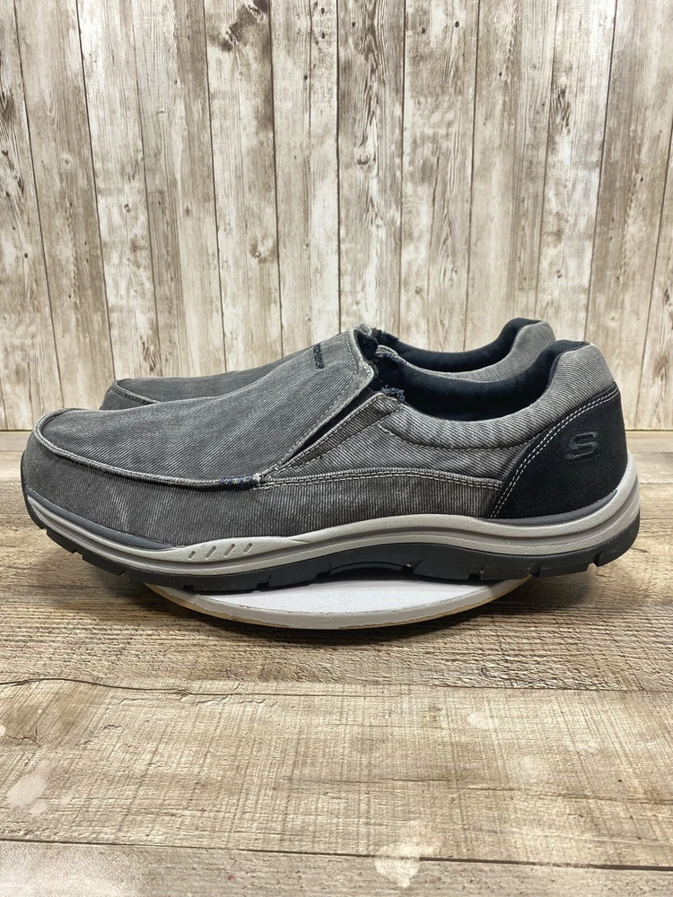 Skechers Men's Extra Wide Fit Relaxed Fit Black Textile Loafers in size 15. Originally distressed. Good condition. Please check all the pictures. *Pre-owned shoes may be slightly bigger than expected by the shoe size.