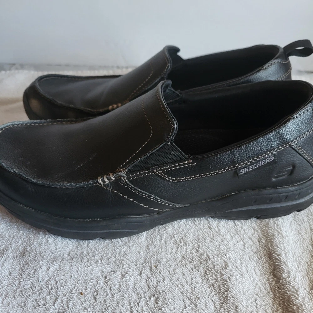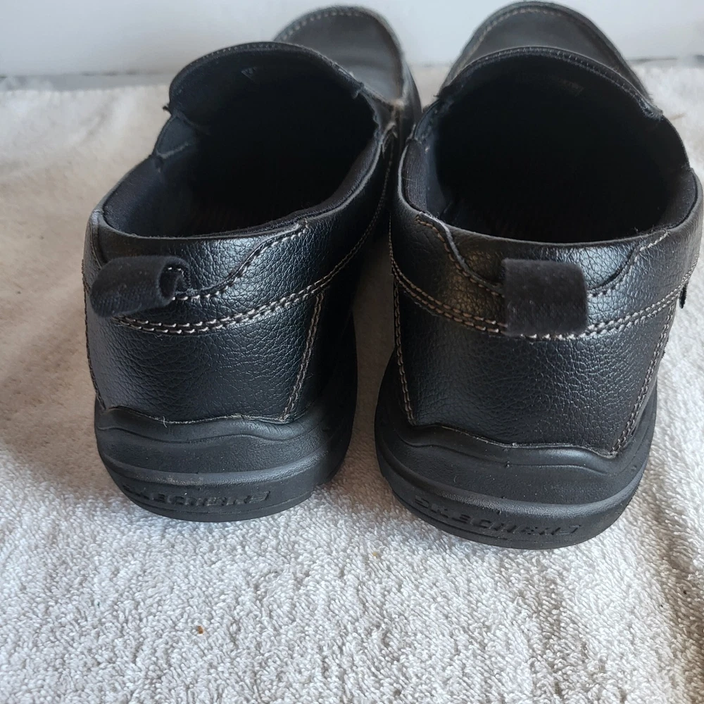 Step up your shoe game with these sleek Skechers Harper-Forde Slip-On Loafers. Made with high-quality leather, these black loafers are perfect for a casual look that doesn't sacrifice style. The slip-on design makes them easy to wear, while the sturdy sole provides comfort and support. These loafers are a must-have for any fashion-forward man's shoe collection.