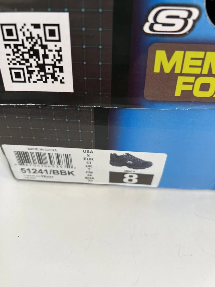 Skechers Men's Vigor 2.0 Trait Memory Foam Sneaker Size 8, Black. New with tags in box. Box does show some wear. Crnr