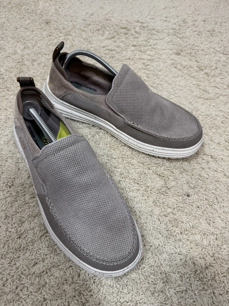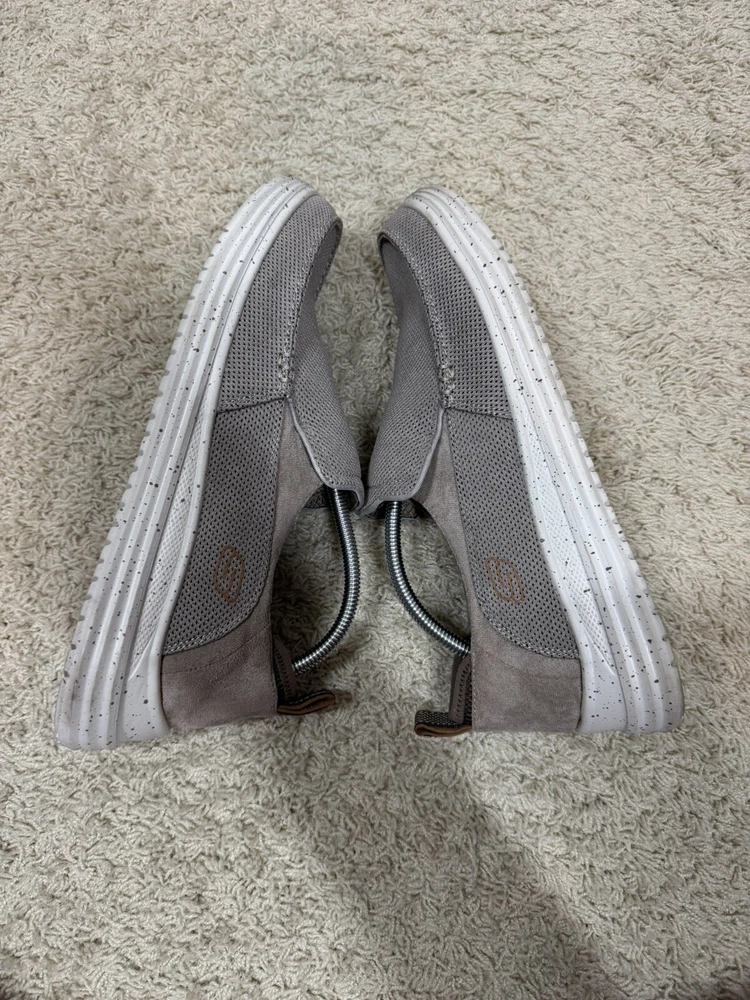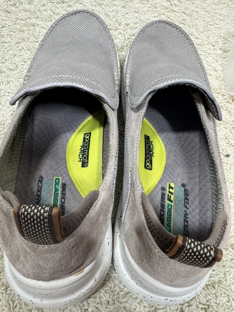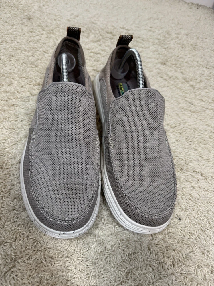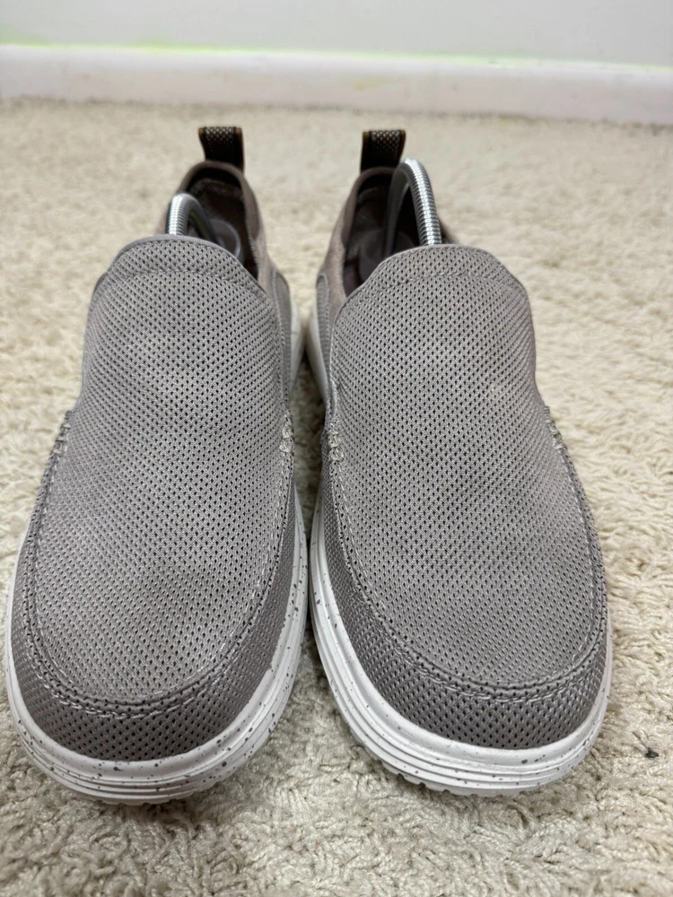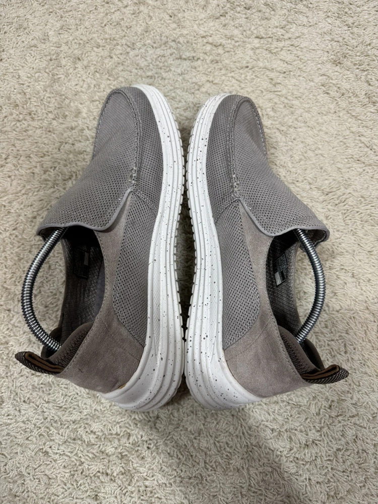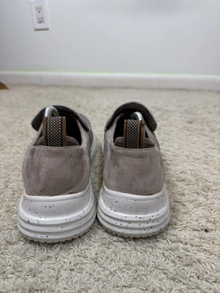 Excellent condition When you look at the shoes there is a shaded spot on the left toe it’s small and may come out No other flaws stains or odors Fast ship