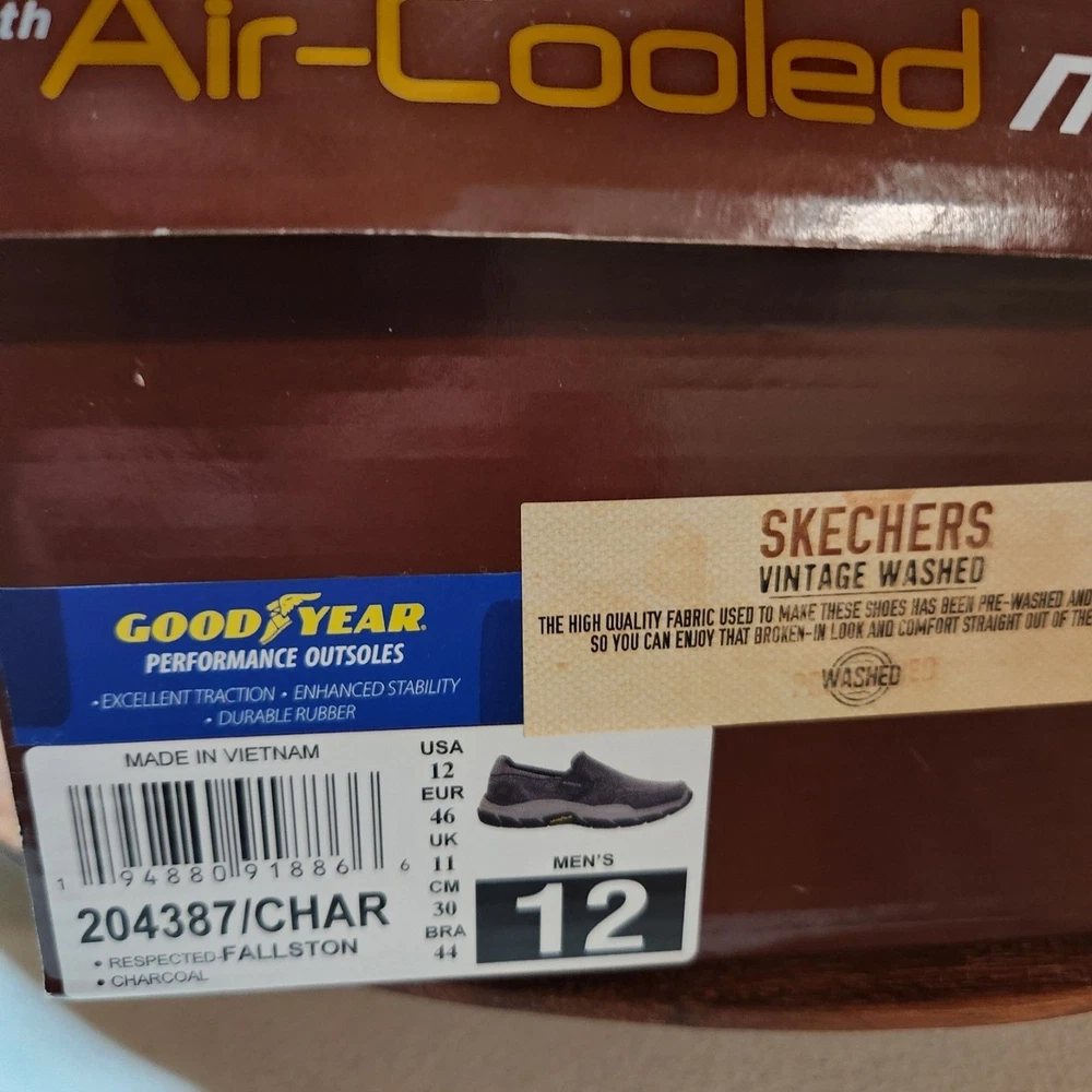 men's US size 12 Euro 46 Skechers relaxed fit Respected Fallston memory foam clean soles, with box please go by my typed description and photos - not auto fill for the most accurate descriptions - message me with any questions