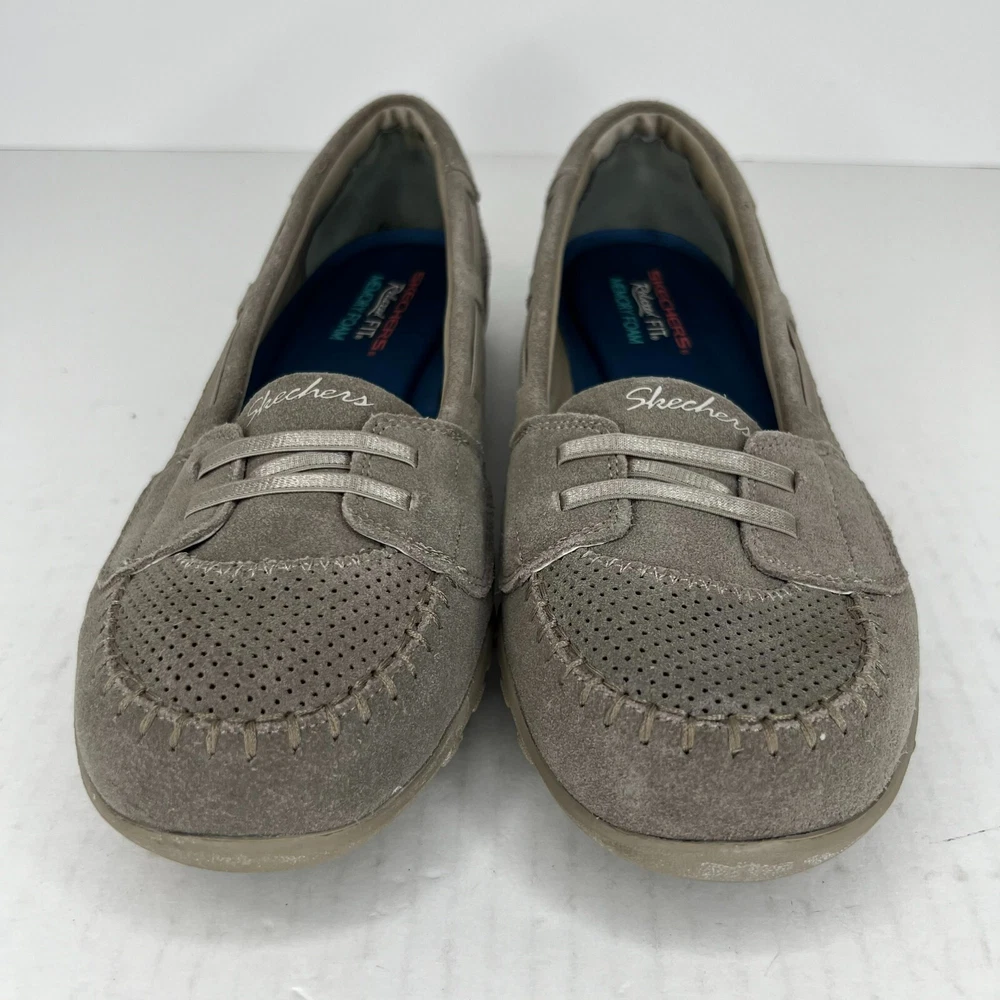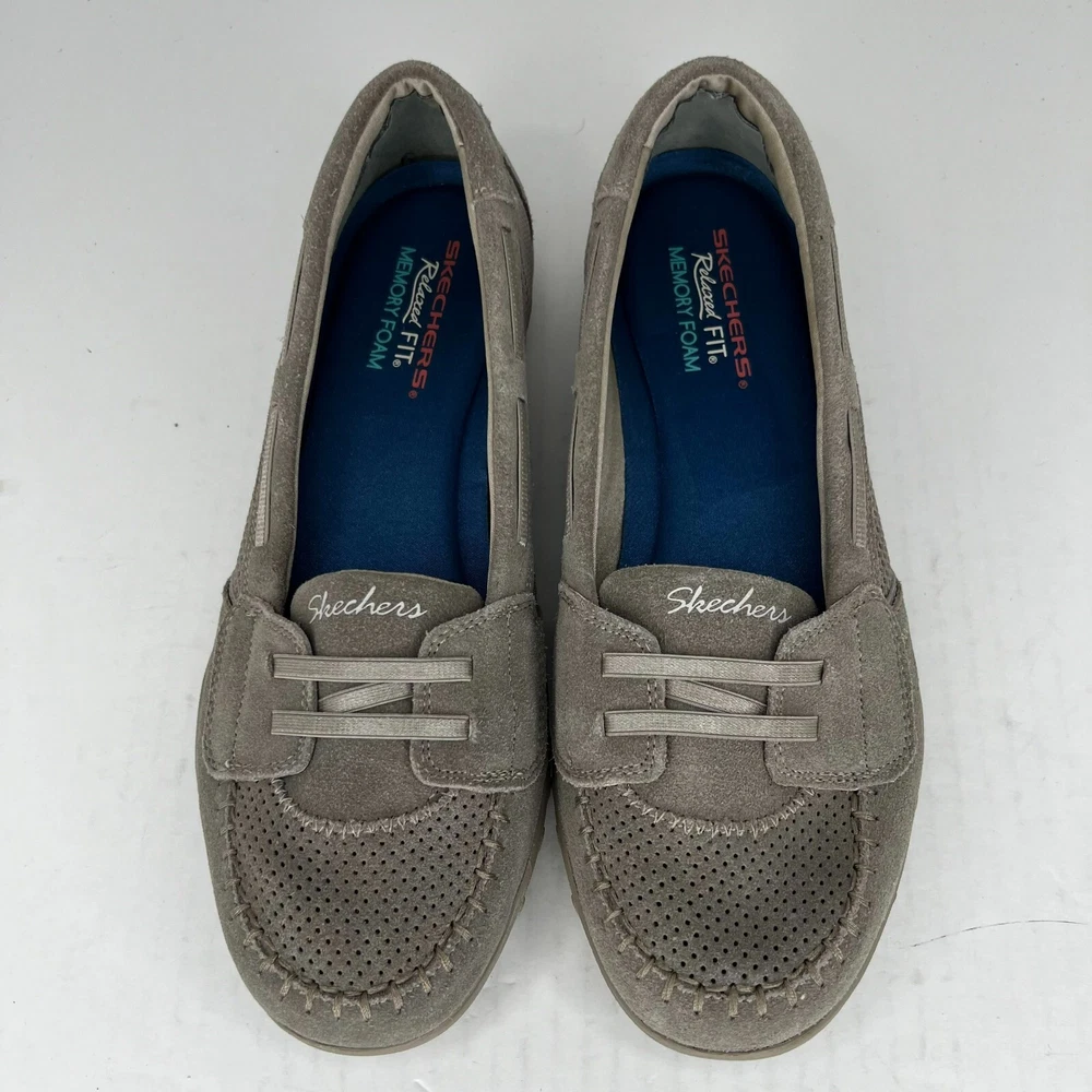 Elevate your casual style with these Skechers Newbury St Adored slip-on leather loafers , perfect for walking in any season. The round toe shape and low-top shoe shaft style offer a comfortable fit, while the slip-on closure makes it easy to slide them on and off. The gray solid pattern is timeless, and the suede lining material adds a touch of luxury. These flat-heeled loafers are perfect for anyone looking for a comfortable yet stylish shoe for everyday wear. The foam insole material and leather upper material make these loafers durable and long-lasting. Whether you're running errands or going for a stroll, these Skechers loafers are a must-have addition to your shoe collection. 100% CUSTOMER SATISFACTION IS OUR GOAL! Our items are always carefully examined for condition, measured if necessary, and photographed in a climate controlled and smoke-free environment. We make every attempt to accurately describe and clearly picture the items we have for sale. Please, ALWAYS view all of the photos. We value your business and our goal is your complete satisfaction. FAST SHIPPING All items are packaged with care and shipped out the same or next business day via USPS, FEDEX, or UPS with tracking numbers so you are always informed. RETURNS We offer a 30-day return policy. All items must be unused and unopened in the condition in which they were received, with original packaging, and all accessories included for return. REVIEWS - CUSTOMER SATISFACTION - COMMUNICATION We aim to make you happy. After you receive your shipment, please leave a positive review . If you have concerns or questions about your order, please contact us so we can resolve the issue. We will do our best to make you satisfied. THANK YOU FOR YOUR BUSINESS!