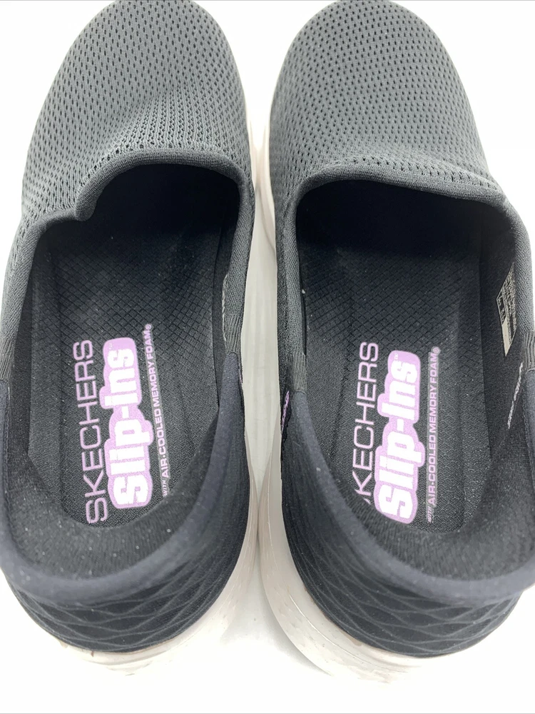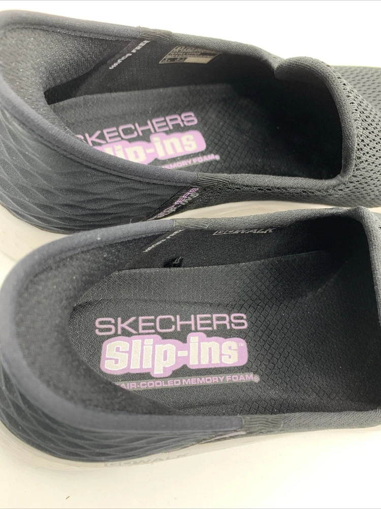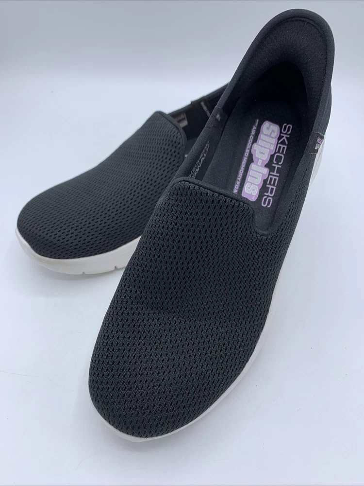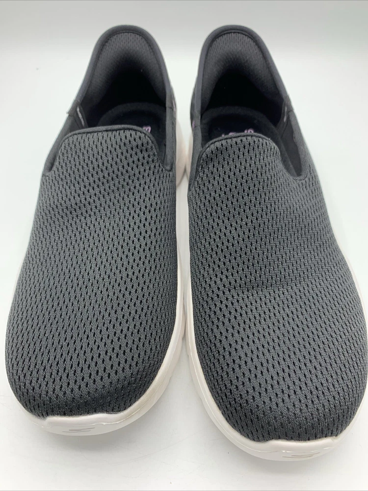 Elevate your casual style with these Skechers GO Walk Flex Relish slip-on shoes. The black mesh upper material is accented with a logo and a solid pattern. The round toe shape and low top shoe shaft style provide a comfortable fit for walking, while the rubber outsole ensures durability. These shoes are perfect for any occasion, whether it's for travel, activewear, casual outings, or workwear. The cushioned memory foam insole and lightweight design, make them a reliable choice for comfort. These Skechers GO Walk Flex Relish slip-on shoes are available in size 9.5. Very good pre owned condition.