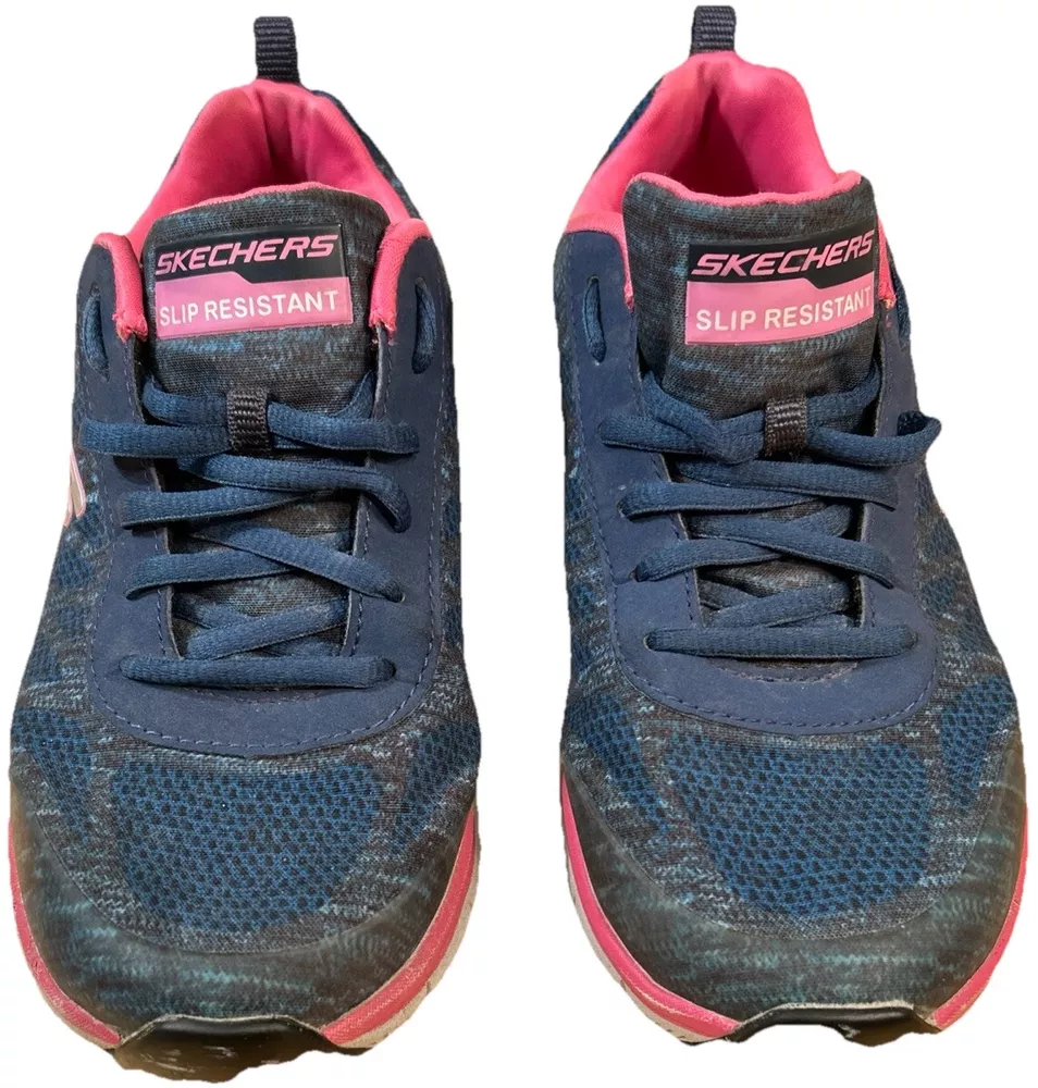 Skechers Work Slip Resistant Size7.5 Womens Shoes Athletic Blue Pink Slip resistant Size 7.5 women's Very good preowned condition. See photos for condition details.