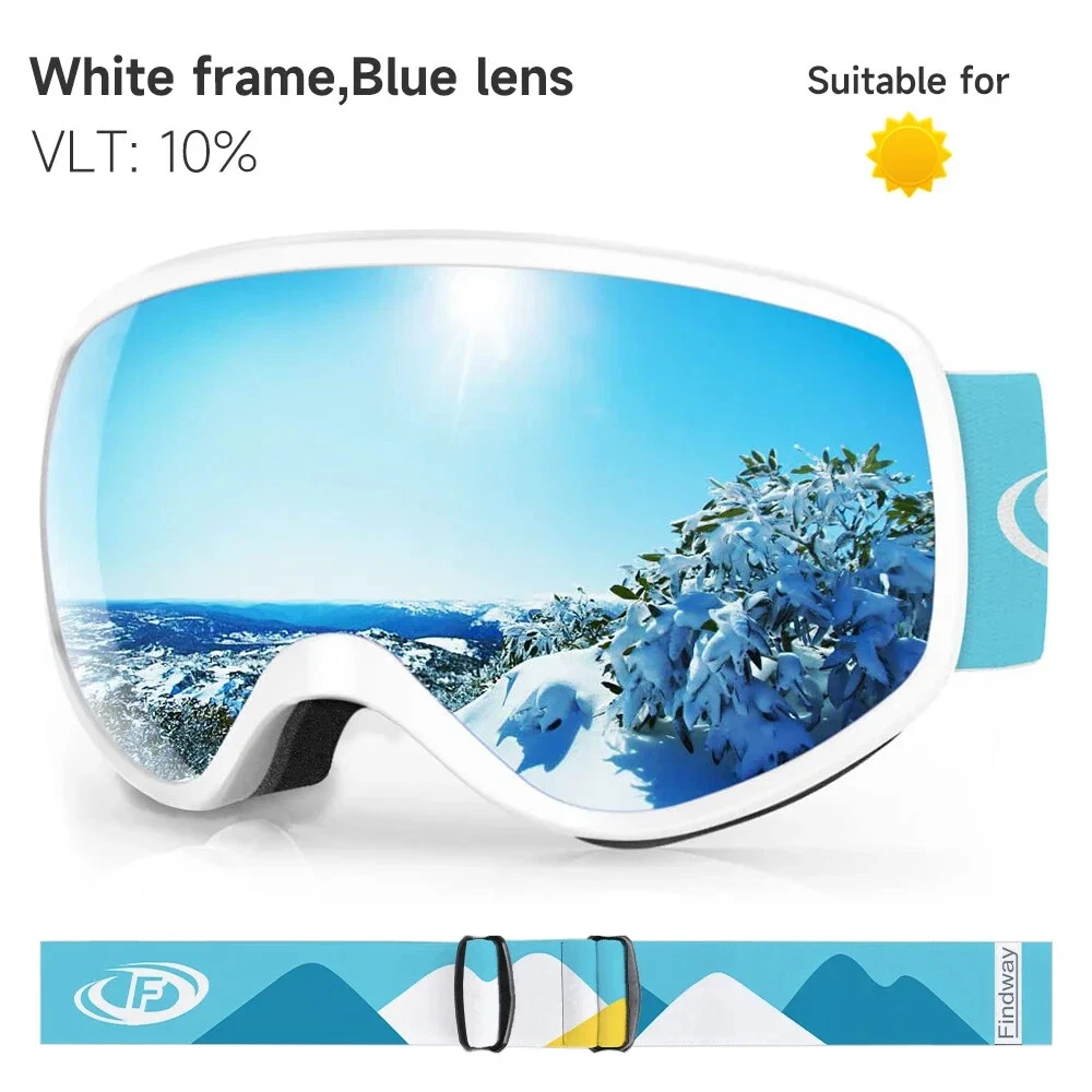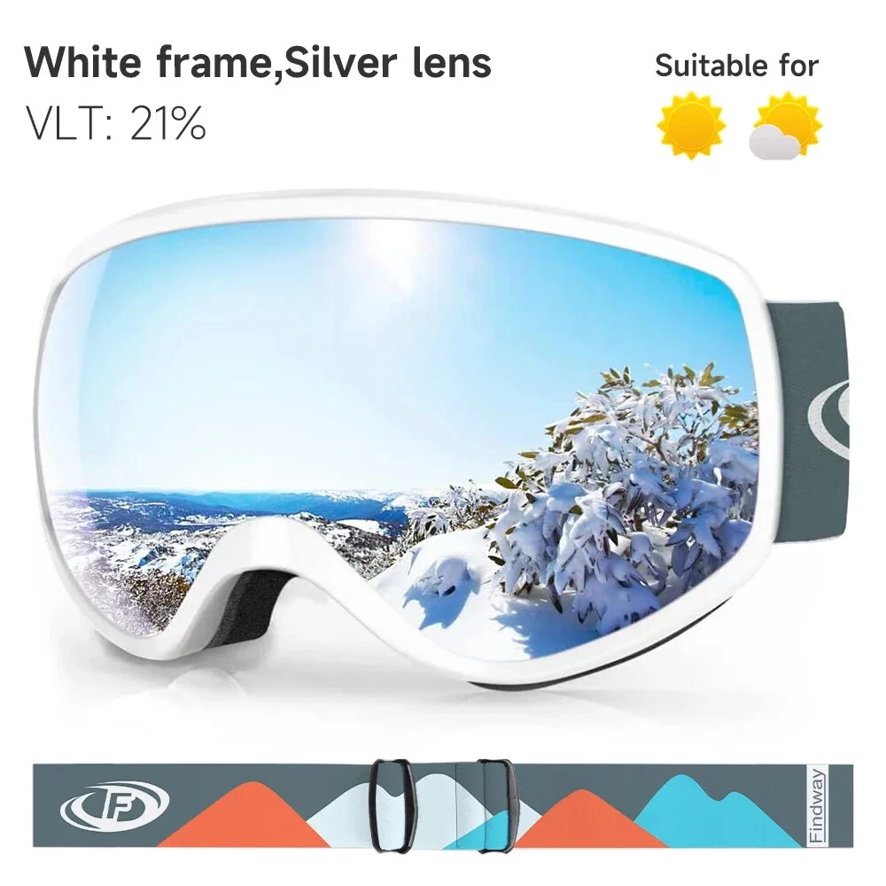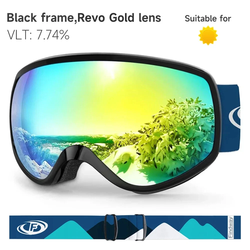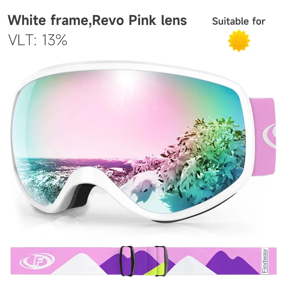 【Anti fog and 100% UV400 protection】 Anti fog skiing goggles have UV400 protection, using high-performance double-layer lenses to prevent fogging and protect your eyes from glare, providing you with excellent clear vision and protecting your eyes from harmful sunlight. Ultra hard external lenses can improve scratch resistance. 【 Comfortable and Warm 】 The high-quality soft TPU frame provides additional safety in the event of falls or collisions. This ski goggles have three layers of soft and breathable foam, which are tightly attached to the frame. They seamlessly wrap around your face and eyes, protecting them from sunlight, wind, sand, and snow, keeping you warm and providing you with ultimate comfort. 【 Universal Helmet Compatibility 】 This children's skiing goggles are equipped with adjustable anti slip straps, with a long adjustable range and strong elasticity, ensuring that almost all helmets are compatible with children or children. The silicone anti slip straps with three wave patterns can increase friction, ensuring that the snow goggles remain in place on the helmet and do not slip off during the most extreme riding process. 【Professional ventilation】 Ski goggles provide a smooth airflow system that can quickly and effectively bring fresh air and drainage. A professional ventilation system can reduce fog and optimize the air flow inside the lens. The full channel ventilation openings at the top and bottom are designed to remove heat from the inside of the lens. Target group: toddlers/children Designed for 3-10 years old children About Ski Goggles Size Various styles/colors for your choice Compared with other home snow goggles we design anti-fog coating to effectively prevent water mist/fogging For More effective protection of children's eyes Compared with other home snow goggles, we lens design : 1,Anti-fog 2,UV Protection 3,Double-layer Lens Bendable TPU frame Improve safety and comfort Crack resistant lens Compatible with any ski helmet,Make kids skiing safer Simple 3 steps to install glasses steps: 1,Put one side of the 2,Put the other side of the glasses 3,Finish Please note: Max length of over glasses=5.2in Max height of over glasses=1.7in