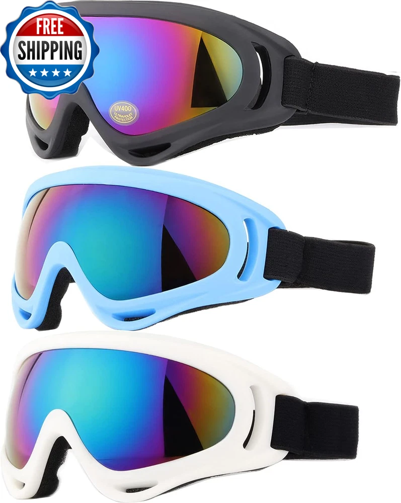 Ski Goggles, Pack of 3 Snowboard Goggles for Kids,Boys,Girls,Youth, Mens Womens PACKAG OF 3-SUITABLE FOR MOST PEOPLE:-YIDOMTO bring you pack of 3 different lens or different color frame. They are perfect suitable for men with small head than normal one, women and kids over 8 years,perfect sets for your family. COMFORTABLE&BREATHABLE AND SAFT:- The PC lens and ABS frames with super toughness protect your face perfectly. The anti-fog groove in both side with breathability can prevent the sweet steaming to fog. Thicken foam make you feel comfortable. VARIOUS USAGE APPLICATION:- Our ski goggles are not only good for ski in the winter days, but also a best choice for you drive, snowboard, go out for hunting, CS Tactical Field, riding your motorcycle or riding the bike in the winter days. DIFFERENT LENS DIFFERENT FUNTIONAL: Multicolor & Grey& Tawny Len are anti-UV and absorb UVA &UVB rays, best choice in sunning day .Yellow Lens can improve the lights, fits using in evening. Transparent provide the best visibility in overcast days. Why you will chose our Yidomto ski goggles Yidomto ski goggles, best partners for skiing or outdoor sports with your family or friends the anti-fog groove in both side with breathability can prevent the sweet steaming to fog. Thicken foam make you feel comfortable. 1.Different lens and different frame for your choice rainbow lens black frame rainbow lens white frame rainbow lens red frame rainbow lens blue frame grey lens black frame transparent lens black frame tawny lens black frame orange lens black frame yellow lens back frame yellow lens-with the effect of improve the lights, fits using in evening. Transparent lenses provide the best visibility in overcast days. Tawny lenses can absorb harmful uva & uvb rays, best choice in sunning day. Perfect package include- pack of 3 ski goggle Usage instruction package includes: Pack of 3 different lens or different frames ski goggles, fit the different demand of your need each package with 3 different lens and different frame, you can change different colors with your mood changes. It is a good choice for your family or friends go out for skiing or snowboard in the winter days. Package of 3-suitable for most people: -Yidomto bring you pack of 3 different lens or different color frame. Perfectly fit your demand of going outdoor sports with your family friends. Part Number glass04 Style Modern Number of Items 3 Item Dimensions LxWxH 8.5 x 5.6 x 3.46 inches Color Multicolor/Grey/Transparent Item Weight 7.68 ounces Material ABS Country of Origin China Package Weight 0.22 Kilograms Sport Type Snow Skiing, Skateboarding Suggested Users Women, Men, Boys, Girls Frame Material Acrylonitrile Butadiene Styrene (ABS) Special Feature Windproof Item Package Dimensions L x W x H 9.21 x 5.39 x 3.03 inches Size One Size Shipping Fast shipping is very important for us. Our standard US shipping service is FREE. Your order will be shipped within 2-3 business days upon full payment received. Your order will be delivered within 2-3 business days after the handling time. We only ship to the confirmed PayPal address. We reserve the right to cancel any order for any reason at any time. We are not responsible for undeliverable addresses. Returns and payment We offer a 30 days return policy from checkout winning date. We allow only PayPal as payment method FeedBack Your feedback very important to us, after you get your package and you are satisfied with our service please leave us positive feedback If you have any problem with your order / any questions please before leave any type of feedback Please visit our eBay store to check out other items for sale! Thank you for shopping at our store.
