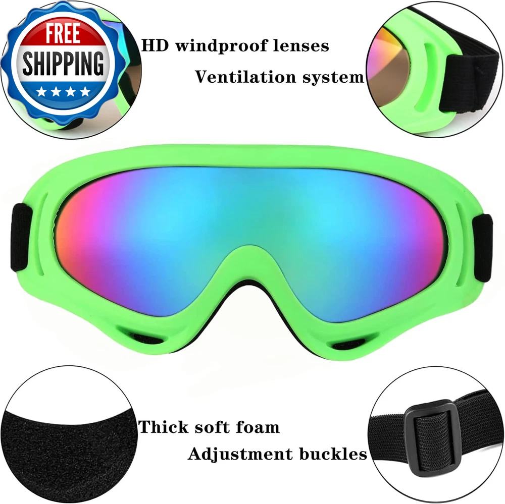 Ski Goggles Snowboard Goggles for Men Women Kids Cycling Motorcycle Snowmobile UV Protection Goggles Winter Snow Sports Glasses for Youth Adult Teens Boys & Girls (Green) Specifications: Colour: Green Lens Material: PC Lens Size: 8 x 17.5cm/3.1 x 6.9 inches Feature: PC hardened mirror, curvy design, anti-frictional, make your vision more open and clear. Sturdy and lightweight, with an adjustable strap suitable for even the most bizarre shaped domes. The ski/snowboard goggles are designed for teenager/youth to adult men and women with its superior anti-fog coating and UV400 protection treatment. UV400 protection The mirror coating can eliminate glare, and the lenses are protected by UV400. Secure TPU frame The soft TPU frame is shock-resistant, ensuring your safety in the event of a drop or collision. Ventilation system The ventilation windows on the top and bottom create effective air circulation to inhibit the formation of fog. Department Unisex Country of Origin China Package Dimensions 8.27 x 4.72 x 0.47 inches; 1.06 ounces Shipping Fast shipping is very important for us. Our standard US shipping service is FREE. Your order will be shipped within 2-3 business days upon full payment received. Your order will be delivered within 2-3 business days after the handling time. We only ship to the confirmed PayPal address. We reserve the right to cancel any order for any reason at any time. We are not responsible for undeliverable addresses. Returns and payment We offer a 30 days return policy from checkout winning date. We allow only PayPal as payment method FeedBack Your feedback very important to us, after you get your package and you are satisfied with our service please leave us positive feedback If you have any problem with your order / any questions please before leave any type of feedback Please visit our eBay store to check out other items for sale! Thank you for shopping at our store.