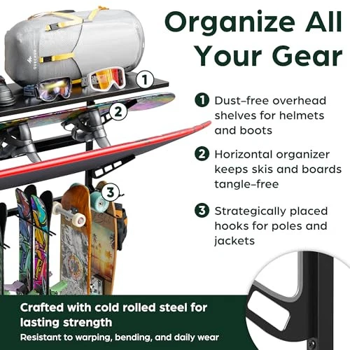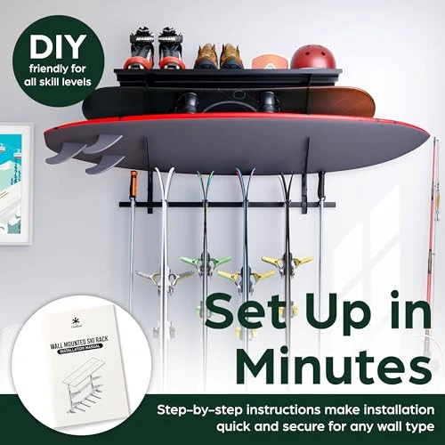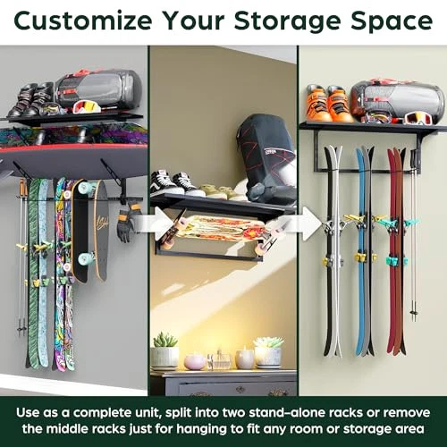 Return Policy Fast Delivery Trusted seller Ski and Snowboard Rack Wall Mount - 46x16x14 Rolled Steel Snowboard Wall Mount Horizontal Rack with Overhead Shelves - Two-Part Ski Rack for Garage, Space Saving Indoor Ski Storage Racks Product Description UTILIZE FLEXIBLE STORAGE with the Ski Wall Mount. Each detachable unit of the ski rack wall mount can function solo or together, letting you tailor your gear setup to your space. Place one in your mudroom and another in the garage, or stack them together EVERYTHING HAS ITS PLACE in our ski holders for wall. The topmost separable unit of the ski carrier has a horizontal ski slot and overhead shelves to store helmets and boots, while the bottom part has multiple slots for jackets, poles, and more skis and snowboards ENJOY RELIABLE STRENGTH and stability for years using this ski holder garage rack, made from cold-rolled steel. From your heaviest skis to seasons of regular use, this snowboard mount wall rack stands strong, resisting warping, rust, and wear GIVE YOUR WALLS SOME STYLE by placing this ski storage rack in your garage, mudroom, or bedroom. The wall-mounted design of this ski board storage frees up floor space while adding a polished look to your storage area SET UP CORRECTLY and quickly, saving you time and eliminating guesswork with the help of the snowboard hanger wall mount rack's easy-to-follow guide with illustrations. For a versatile and space-saving ski wall storage rack, 'ADD TO CART' now! Shipping Returns Payment Shipping Shipping is FREE to all addresses other than APO/PO boxes in the lower 48 states. All our stock ships from US-based warehouses. Shipped via USPS or UPS (depending on location and package weight) Unless stated otherwise, all orders will ship within 24-72 hours of your payment being processed. Check our feedback to see the great reviews of FAST shipping we offer. Returns Seller does not accept returns Payment We currently accept payment via eBay managed payments only. Once payment is cleared, we will dispatch your shipment within 1-3 business days. Please refer to the "Shipping" tab for more information regarding shipping speed to your destination.